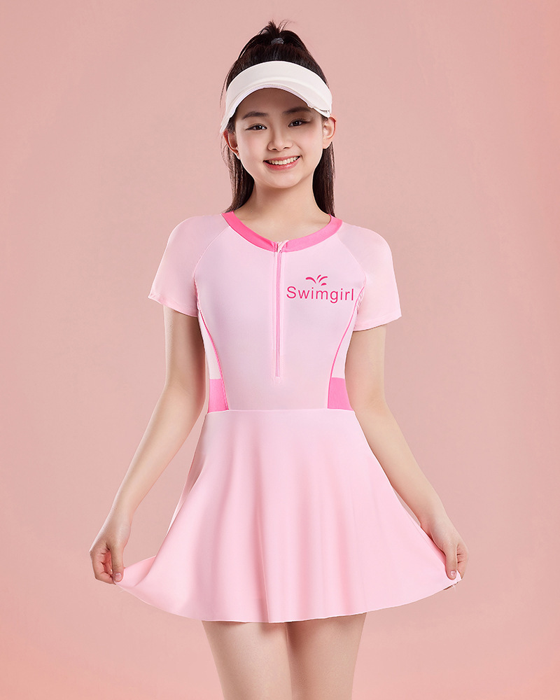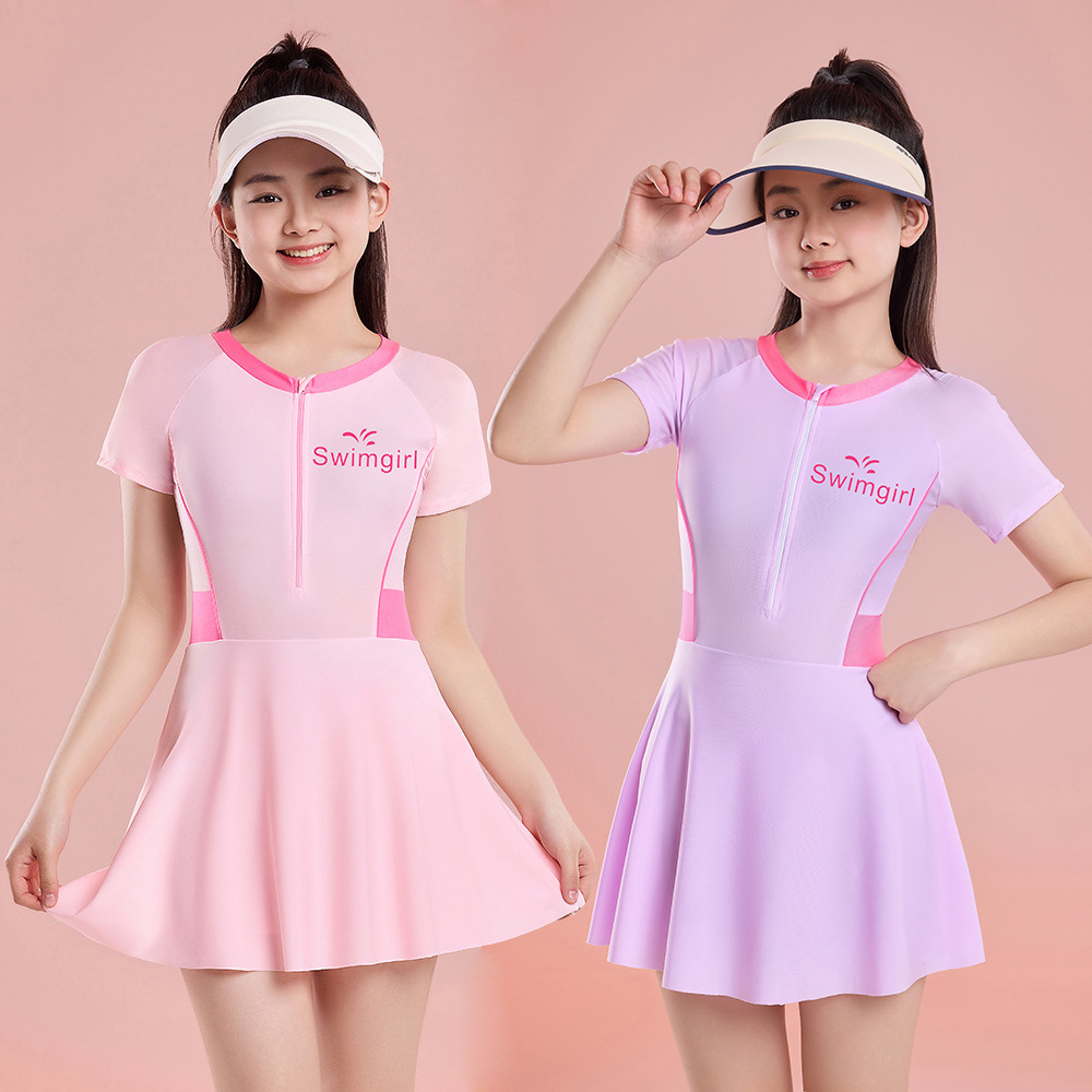 어린이 수영복 소녀 2025 새로운 여름 소녀의 컬러 블록 수영복 큰 아이 아기 귀여운 수영복