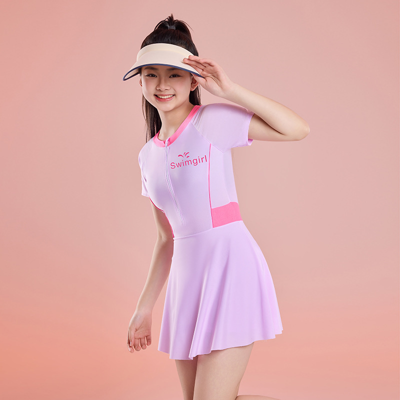 어린이 수영복 소녀 2025 새로운 여름 소녀의 컬러 블록 수영복 큰 아이 아기 귀여운 수영복스토어 가기