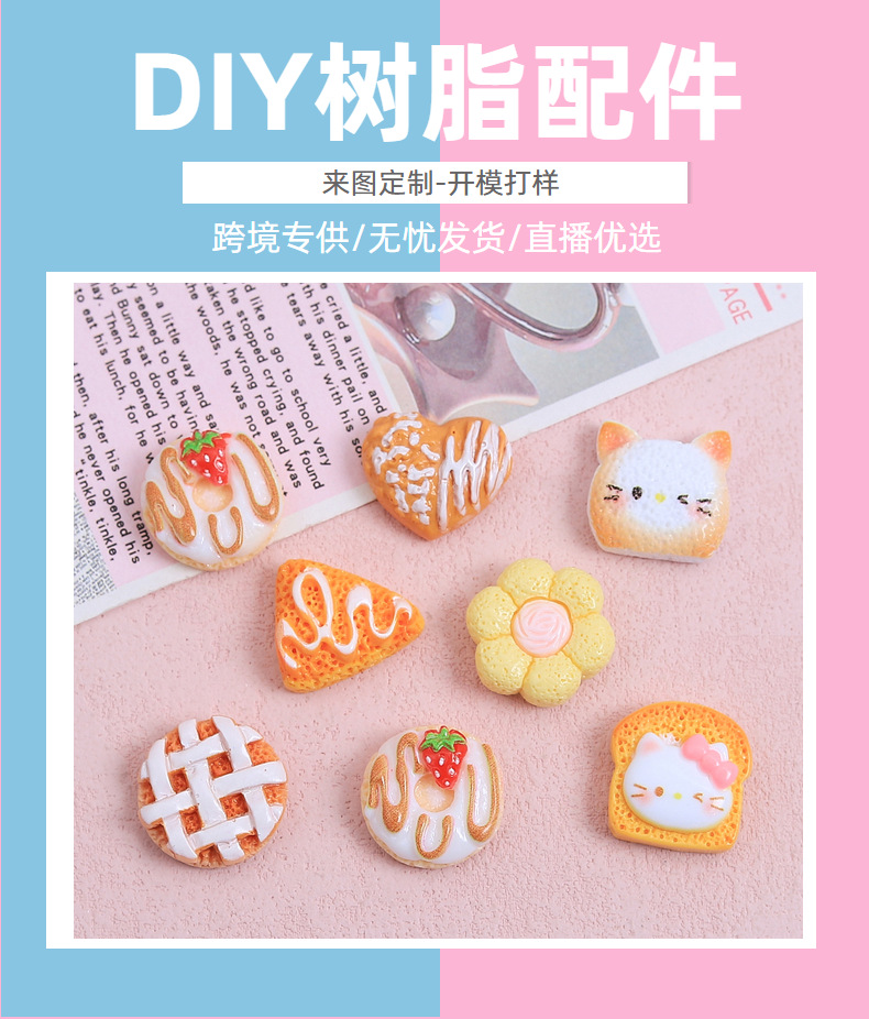 귀여운 딸기 빵 음식 놀이 만화 수제 DIY 크림 접착제 수지 작은 액세서리 동굴 신발 버클 보석 소재스토어 가기