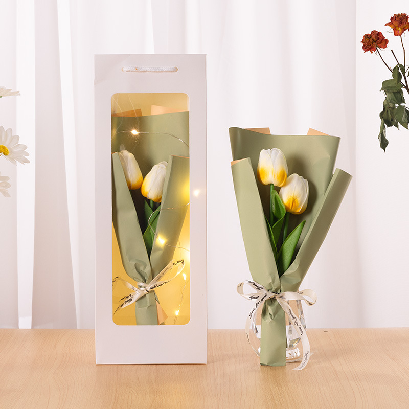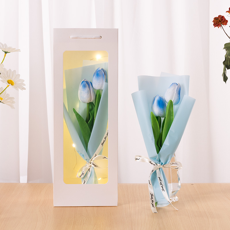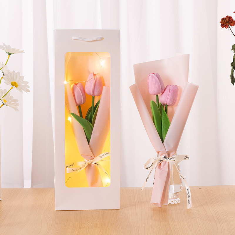 어머니의 날 선물 도매 튤립 꽃다발은 교사와 장로 생일 선물을위한 휴대용 빛나는 비누 꽃을 완성했습니다.스토어 가기