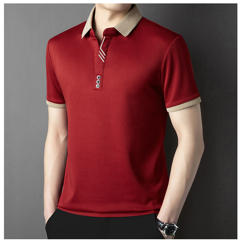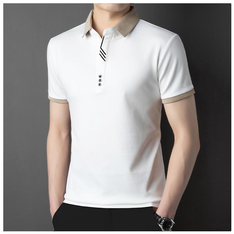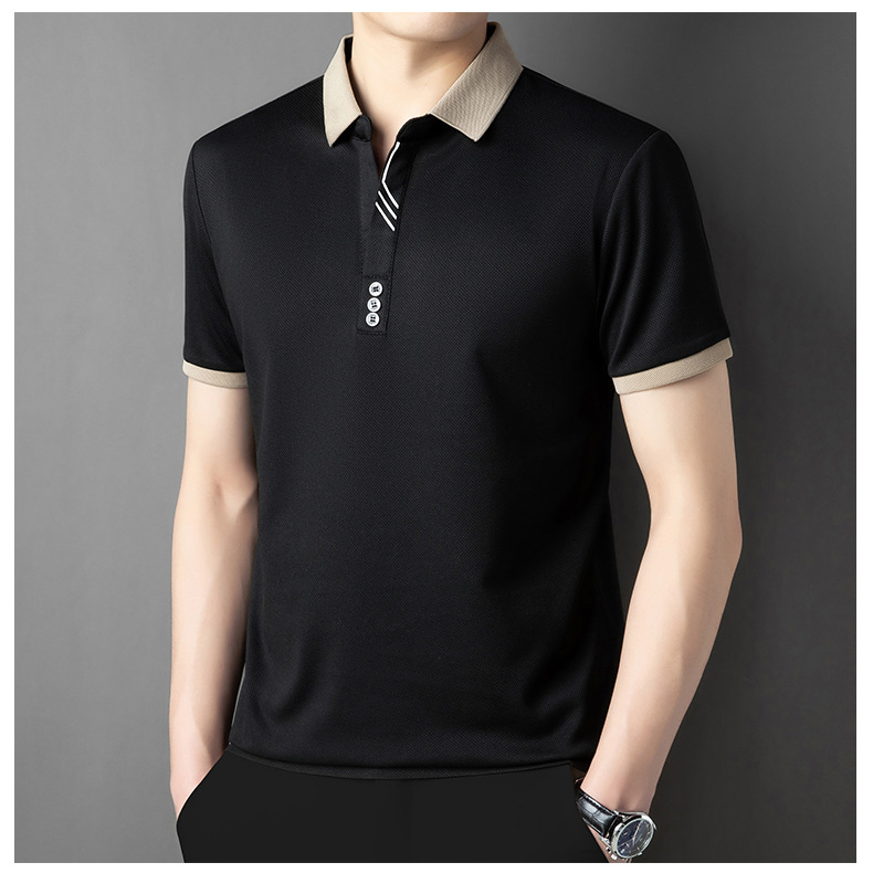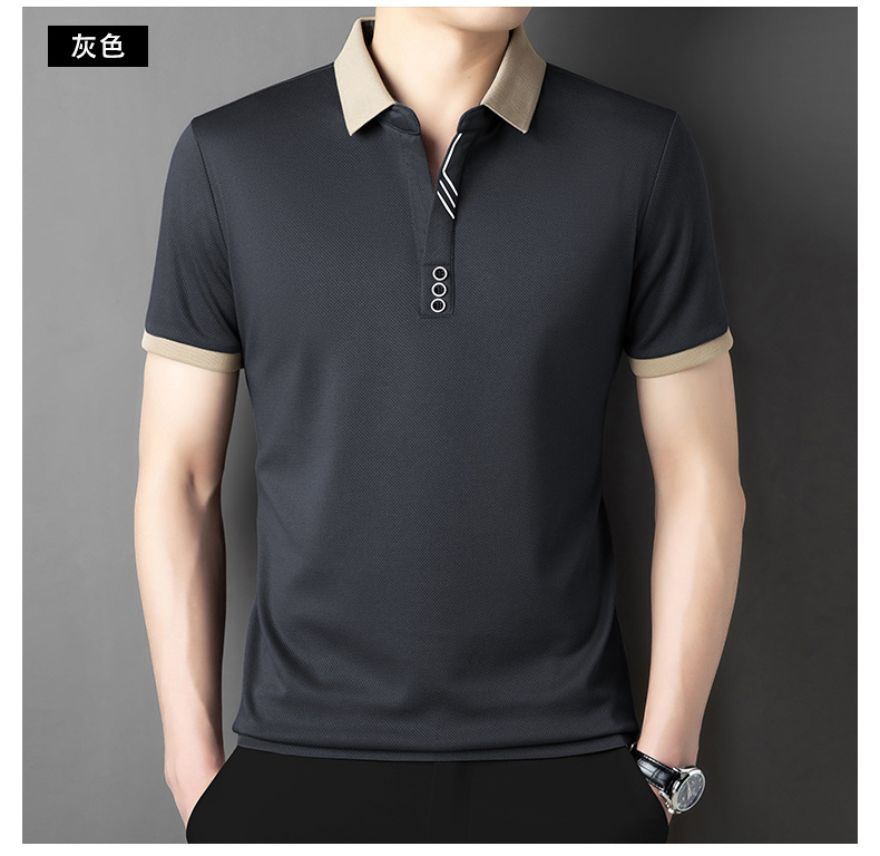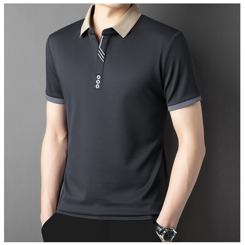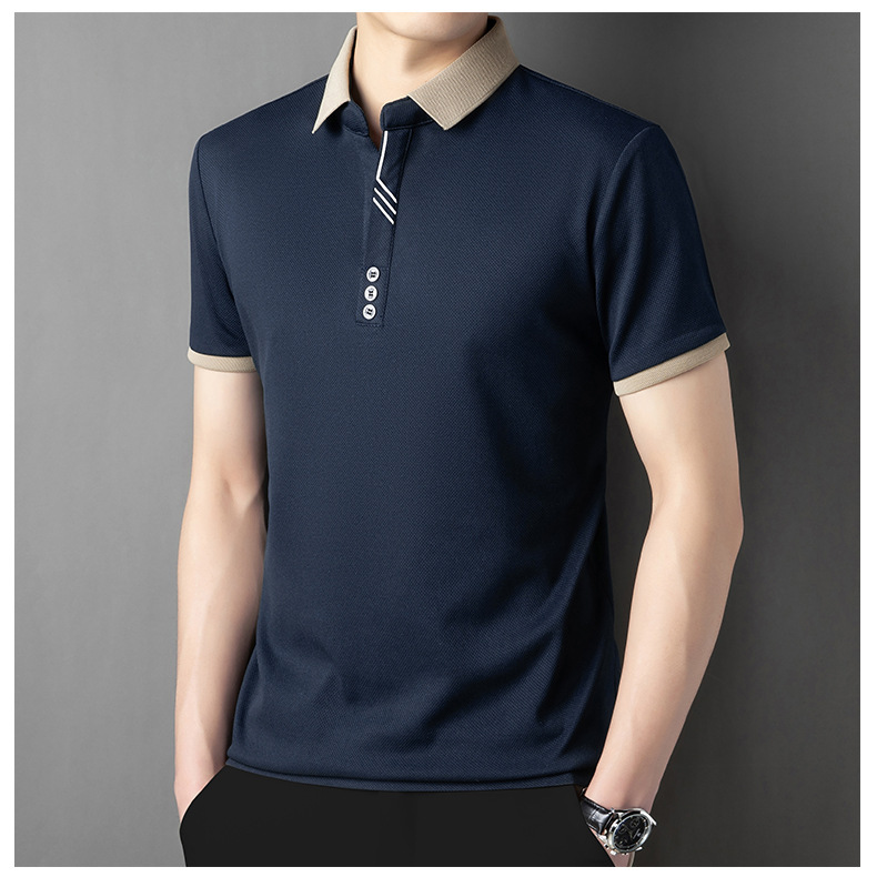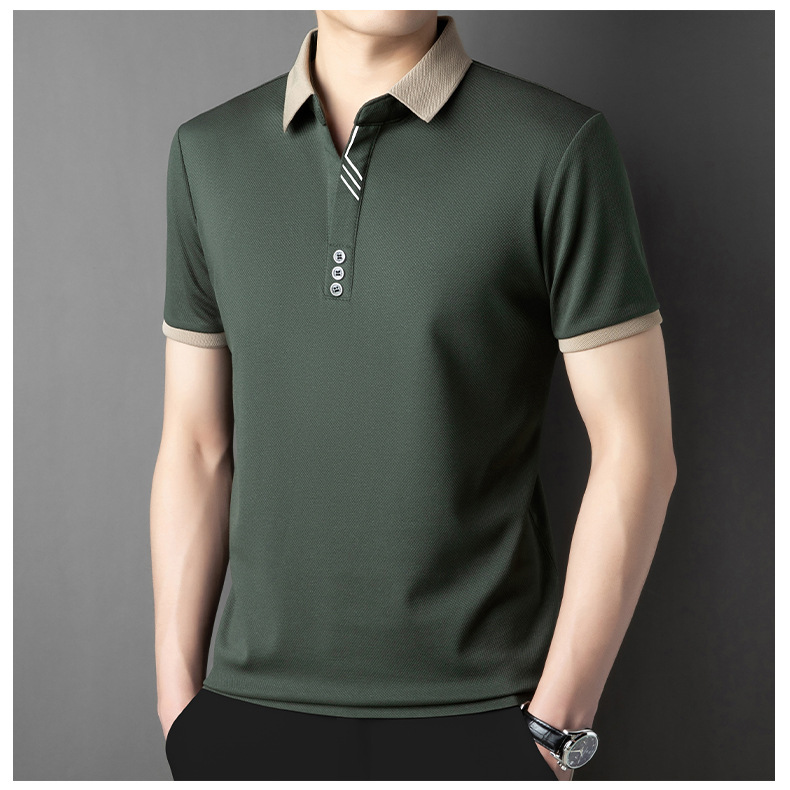 국경 간 고급 여름 옷깃 반팔 티셔츠 남성 피부 친화적 인 통기성 캐주얼 폴로 셔츠 올 매치 트렌디 탑