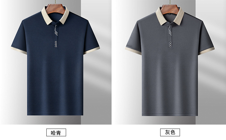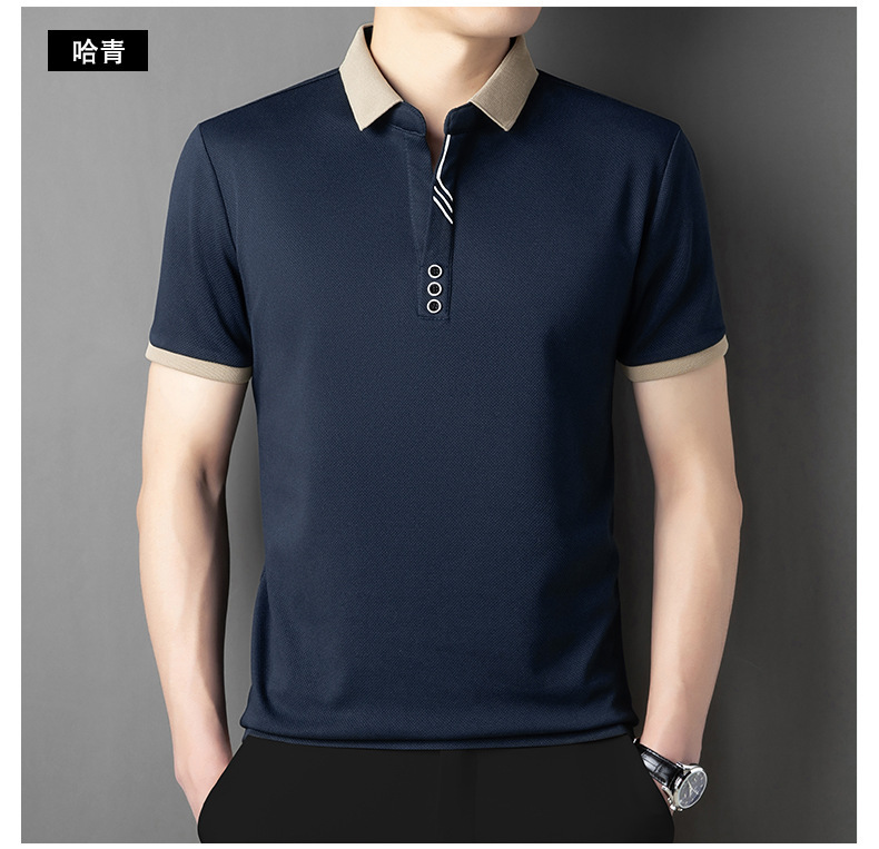 국경 간 고급 여름 옷깃 반팔 티셔츠 남성 피부 친화적 인 통기성 캐주얼 폴로 셔츠 올 매치 트렌디 탑스토어 가기