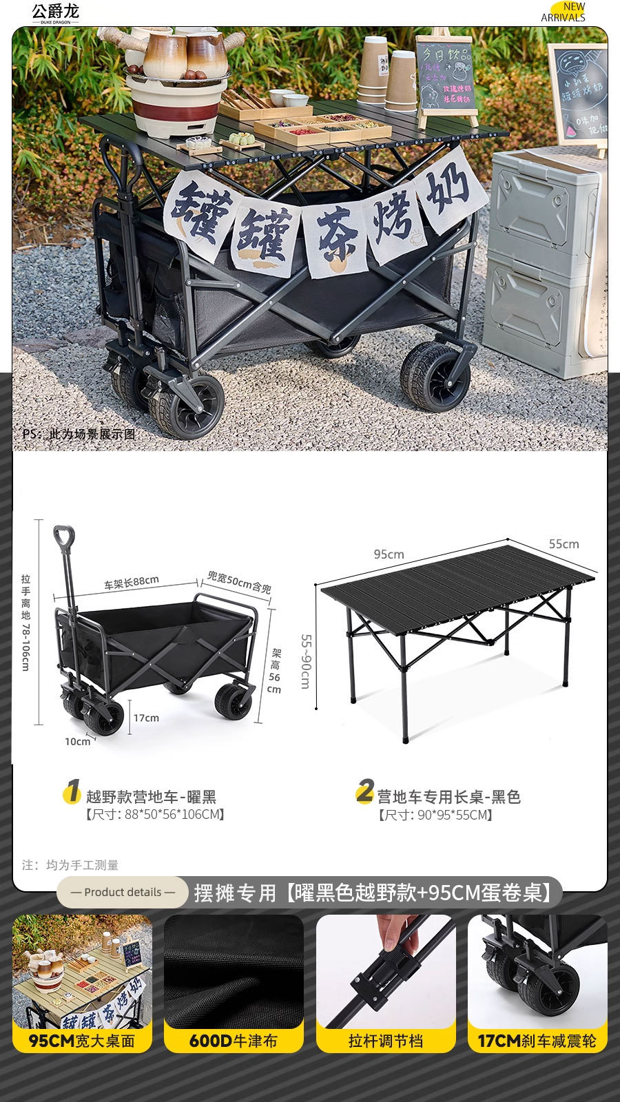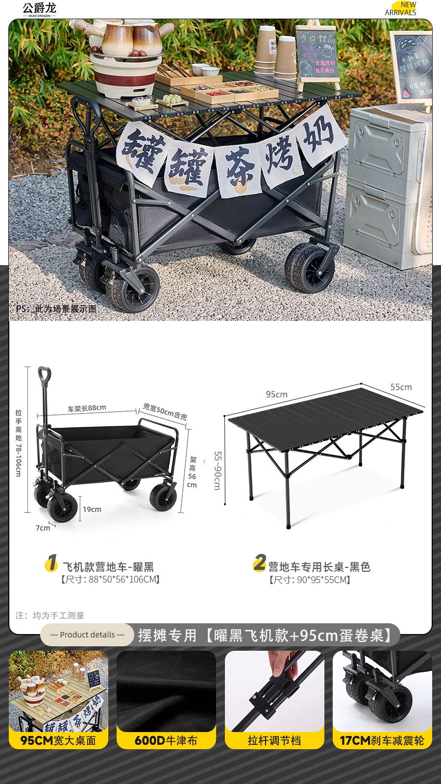 • 브레이크 + 접이식 리프팅 테이블이 포함된 럭셔리 모델 [블랙]