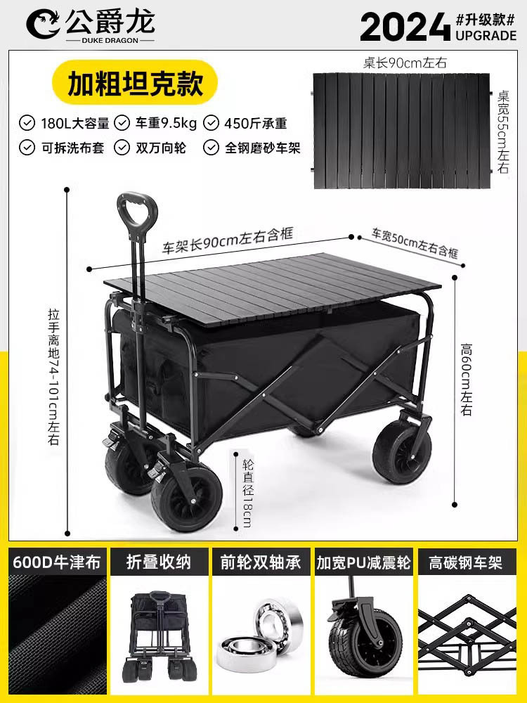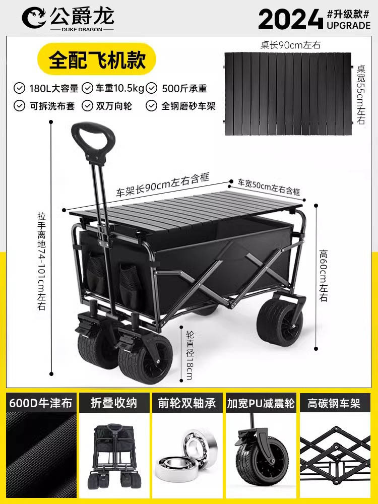 • 브레이크 + 접이식 리프팅 테이블이 포함된 업그레이드 모델 [블랙]