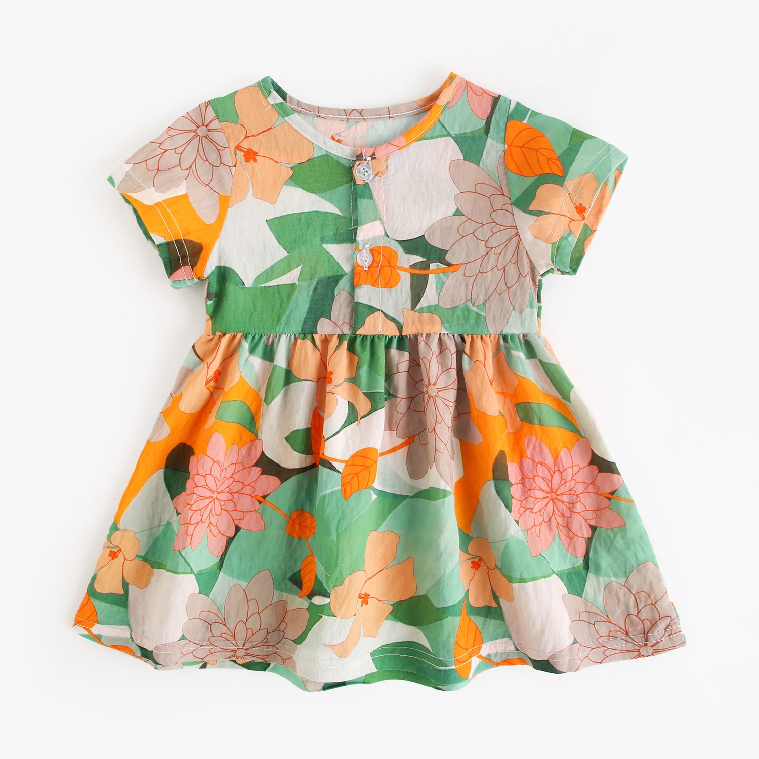 여자 원피스 꽃 여자 아기 여름 반팔 아기 옷 한국식 어린이 비치 스커트스토어 가기