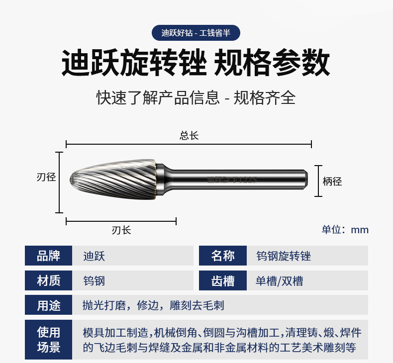 Diyue 텅스텐 스틸 연삭 헤드 카바이드 로타리 파일 연삭 헤드 스테인레스 스틸 리밍 연삭 드릴 비트 내부 연삭 헤드 밀링 커터