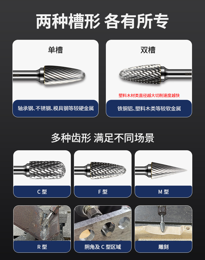 Diyue 텅스텐 스틸 연삭 헤드 카바이드 로타리 파일 연삭 헤드 스테인레스 스틸 리밍 연삭 드릴 비트 내부 연삭 헤드 밀링 커터스토어 가기