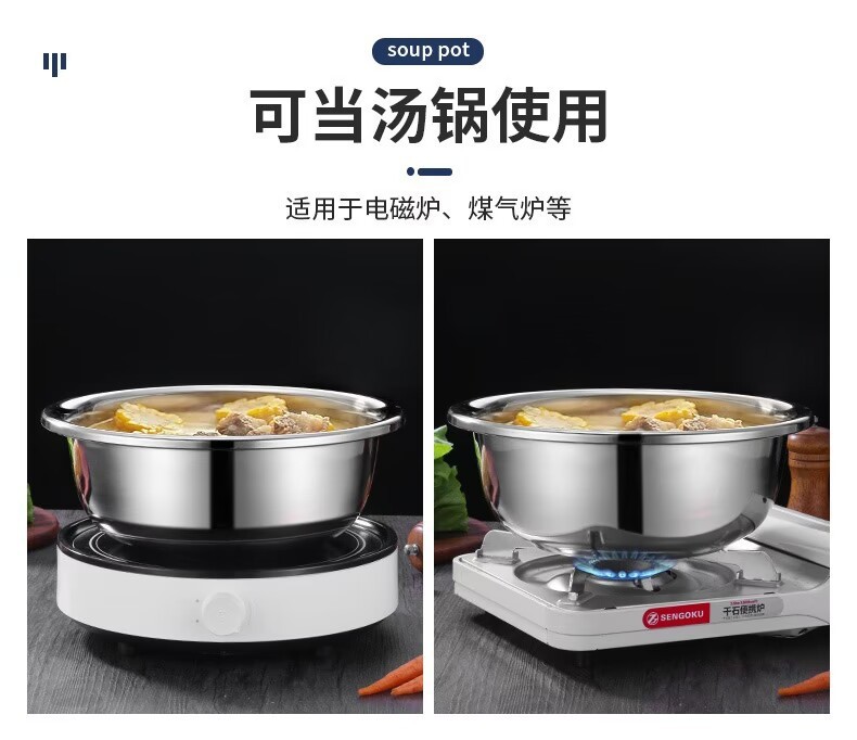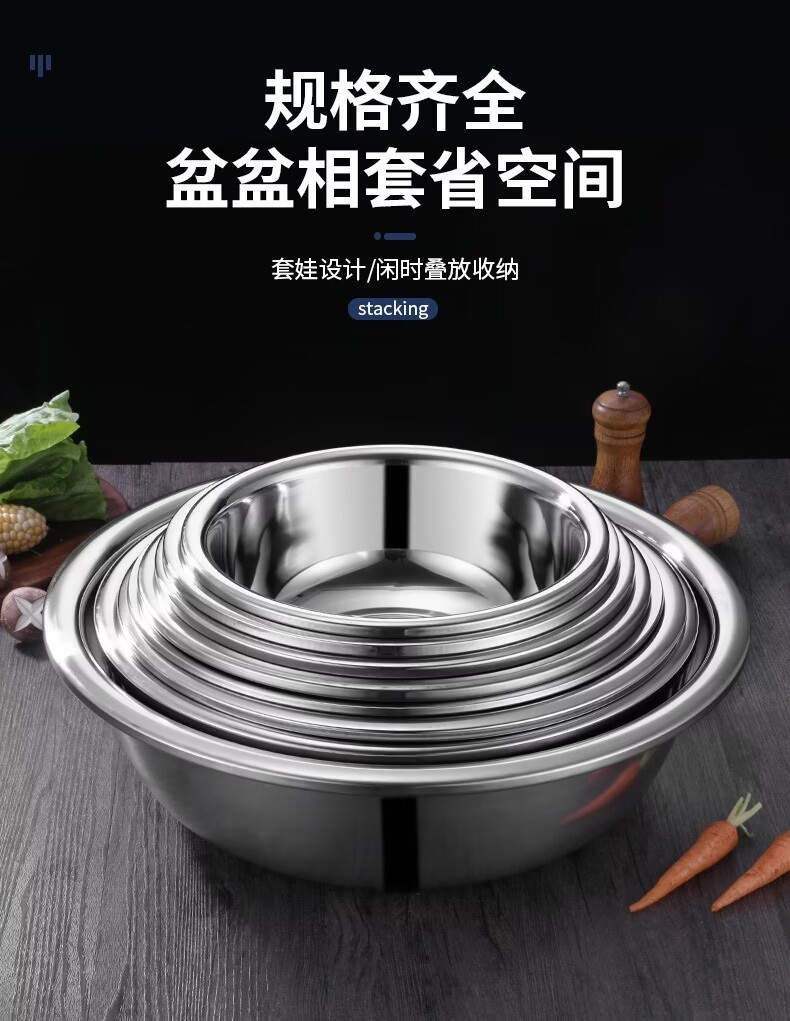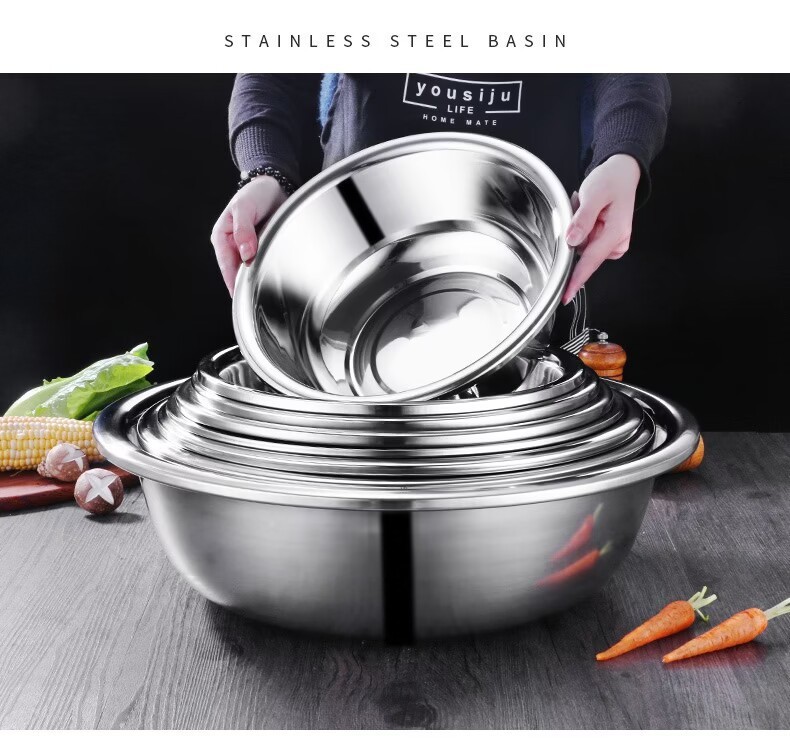 304 식품 등급 스테인레스 스틸 대형 분지 및 분지 수프 분지 야채 분지 세척 얼굴 발 분지 조미료 유역 도매스토어 가기
