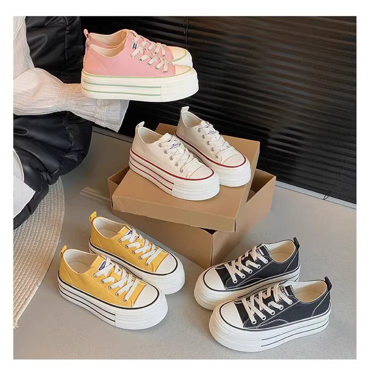 작은 공공 고가의 두꺼운 밑창 캔버스 신발 여성의 2025 새로운 흰색 신발 학생 다목적 로우 탑 보드 신발스토어 가기