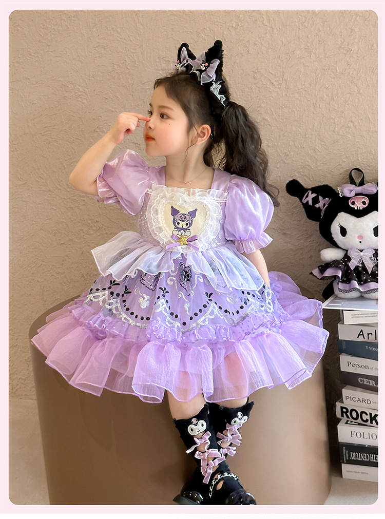 소녀 원피스 2025 년 여름 새로운 어린이 스타일 반팔 쿨로 미 로리타 여성의 보물 여름 공주 원피스