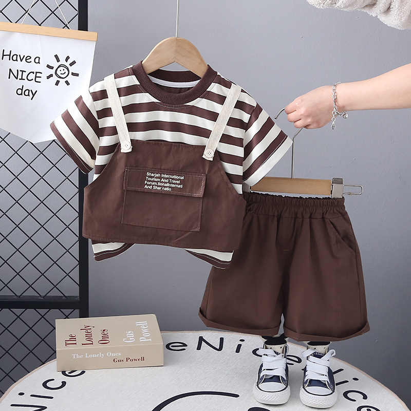 소년 여름 줄무늬 짧은 소매 세트 어린이 서양식 옷 2025 새로운 어린이 아기 아동복 투피스 세트