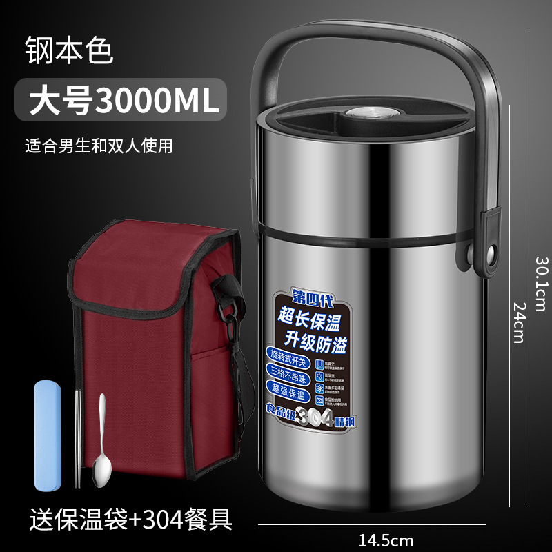 절연 도시락 식사 배달 긴 스테인리스 배럴 대용량 휴대용 시간 슈퍼 긴 점심 가정 사무실 손잡이 무료 배송