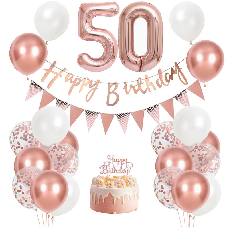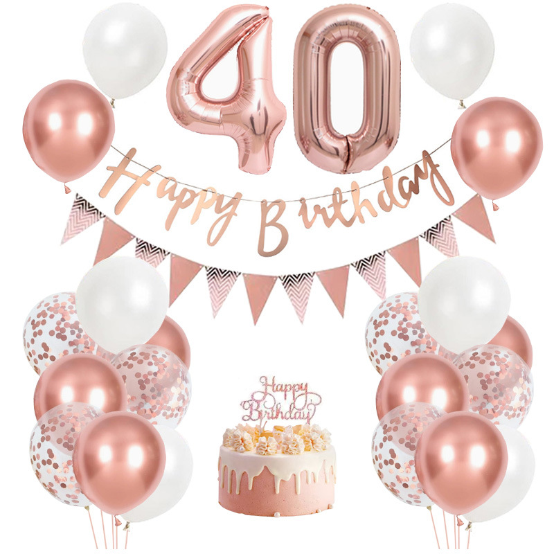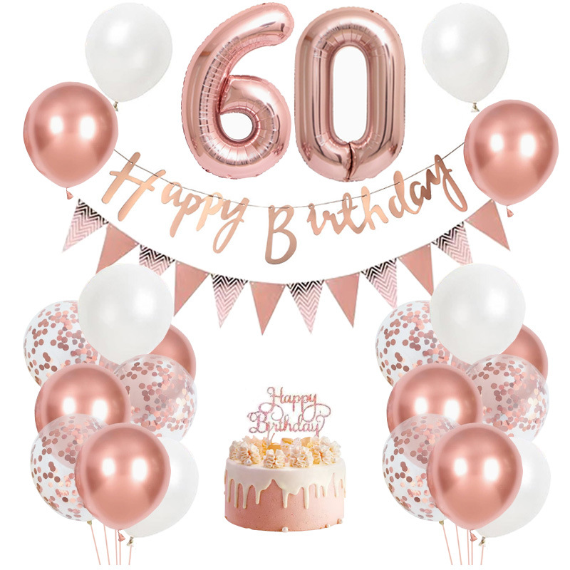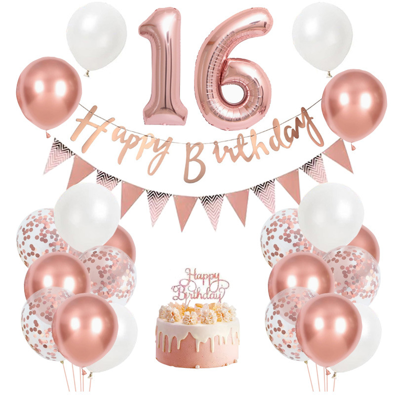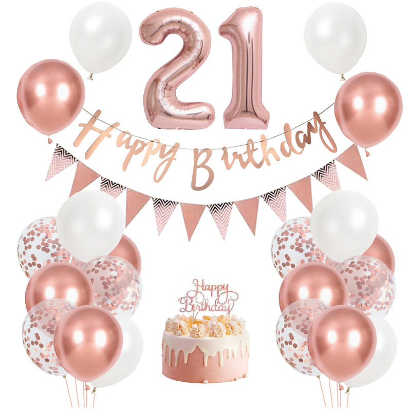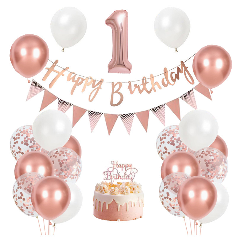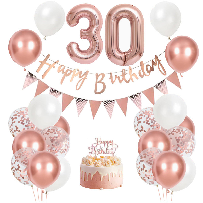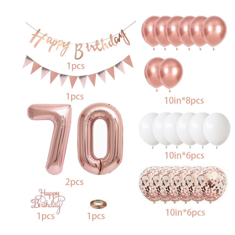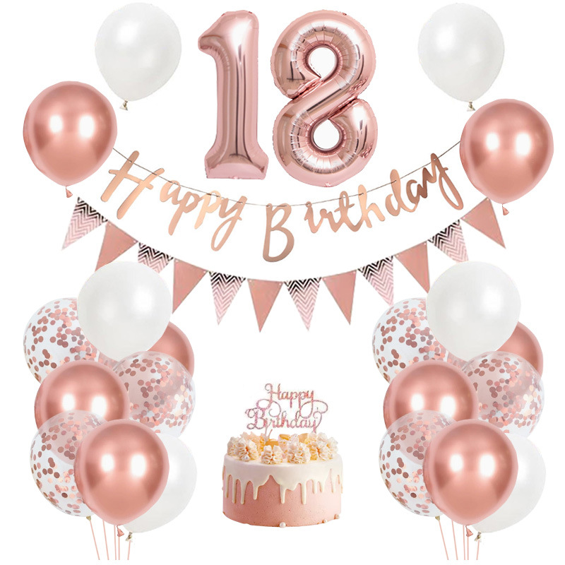 로즈 골드 생일 풍선 세트 생일 레이아웃 플래그 32 인치 알루미늄 필름 풍선 시대 디지털 풍선 장식