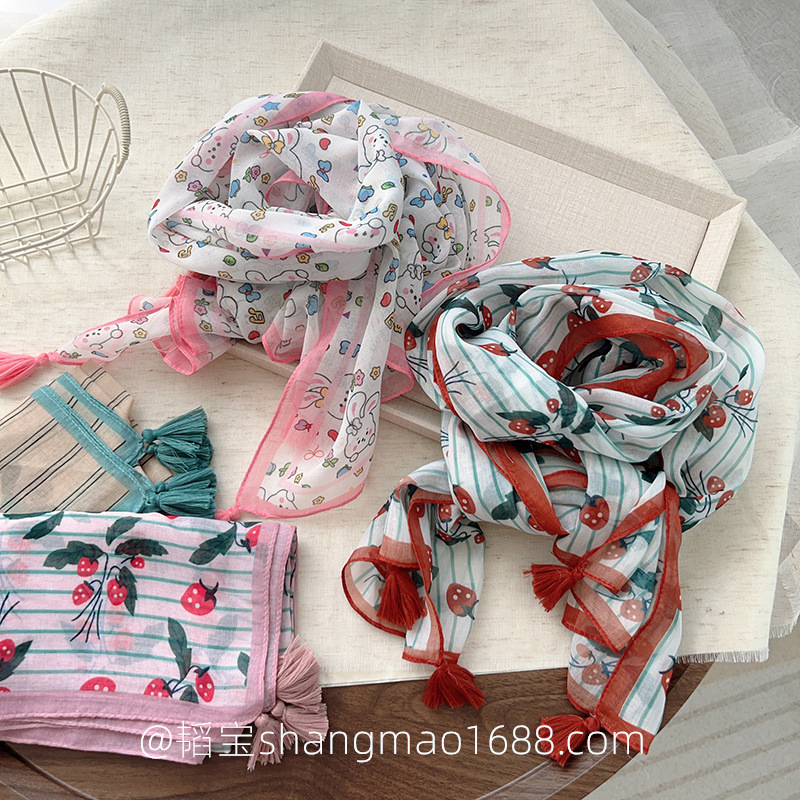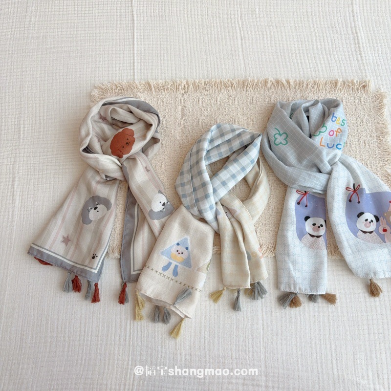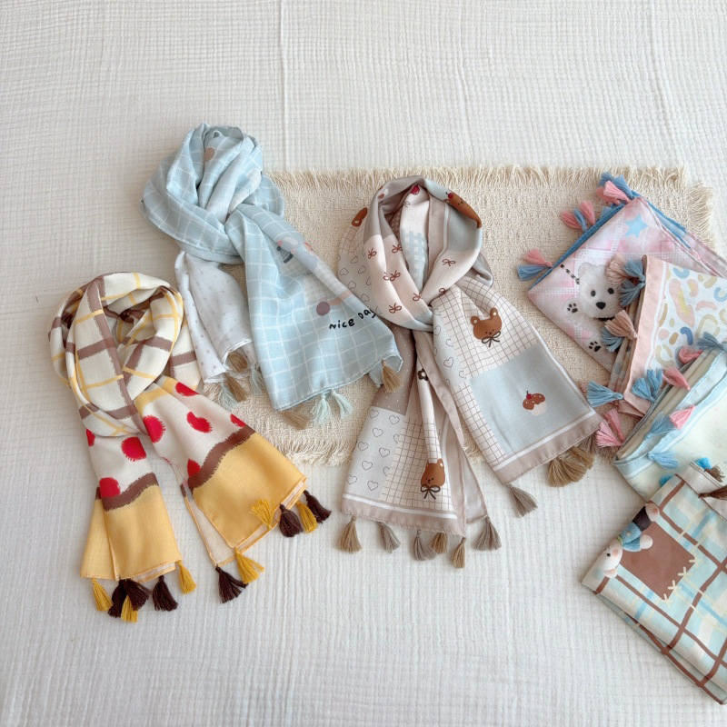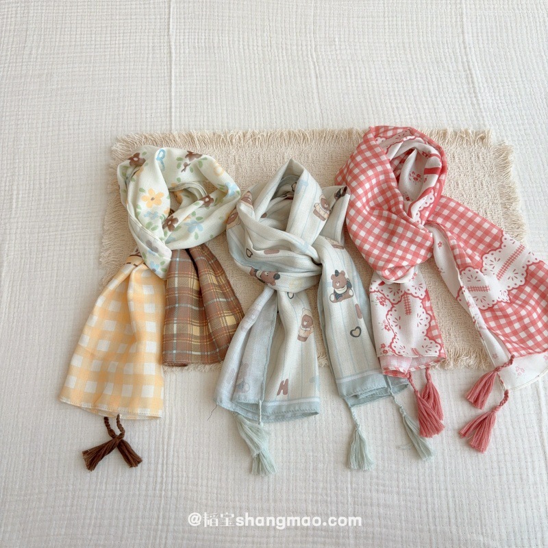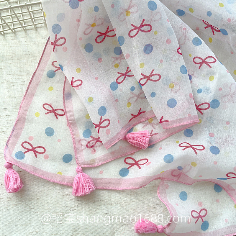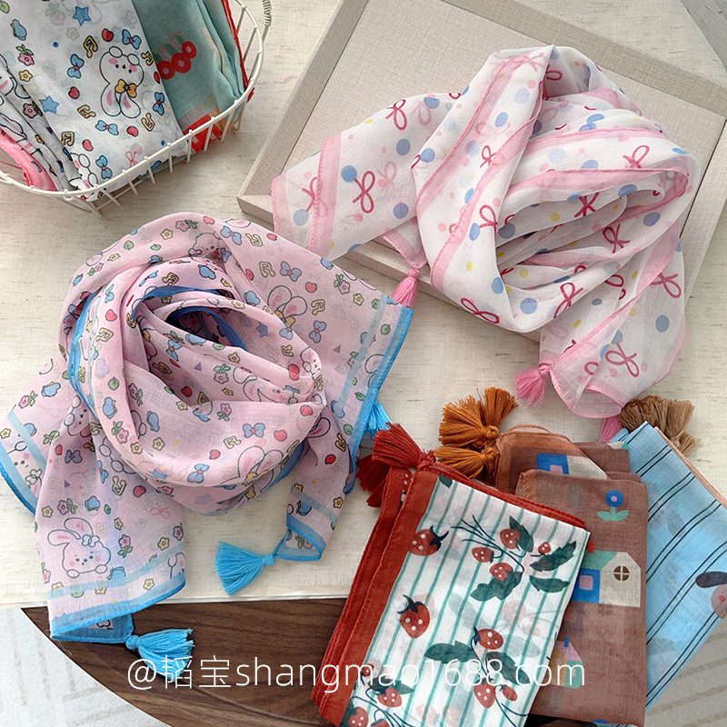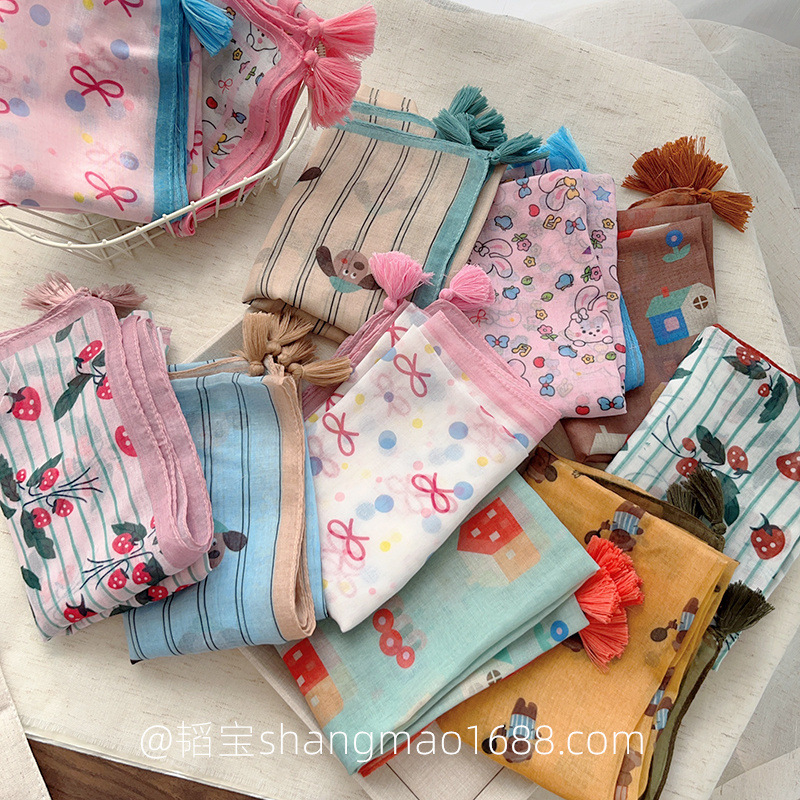 일본 복고풍 어린이 스카프 면 린넨 꽃 얇은 방풍 봄과 여름 아기의 스카프 작은 신선한 실크 스카프스토어 가기