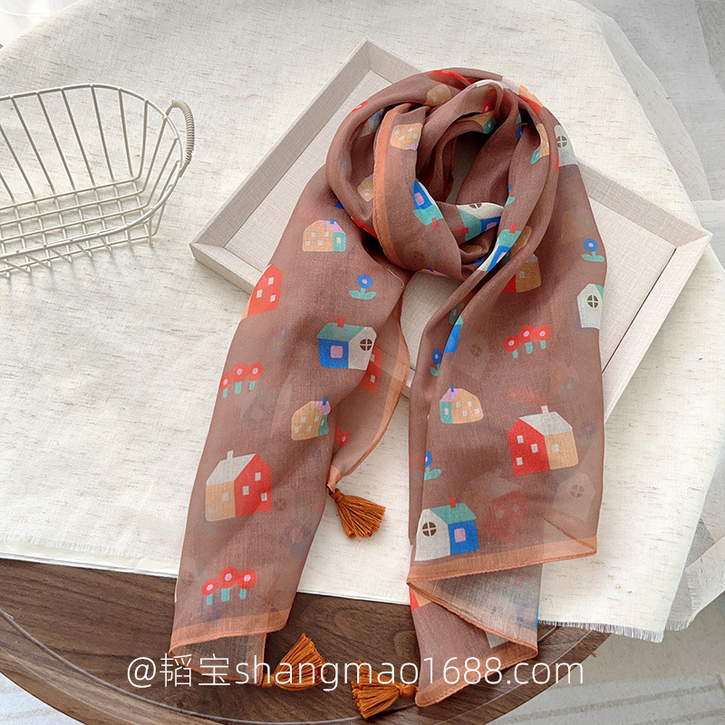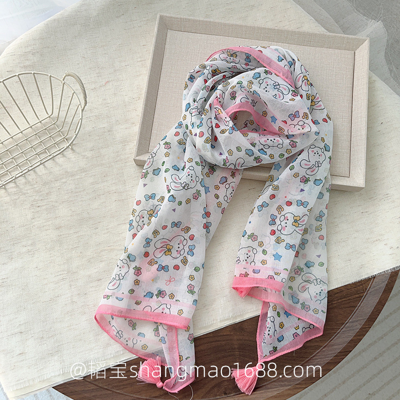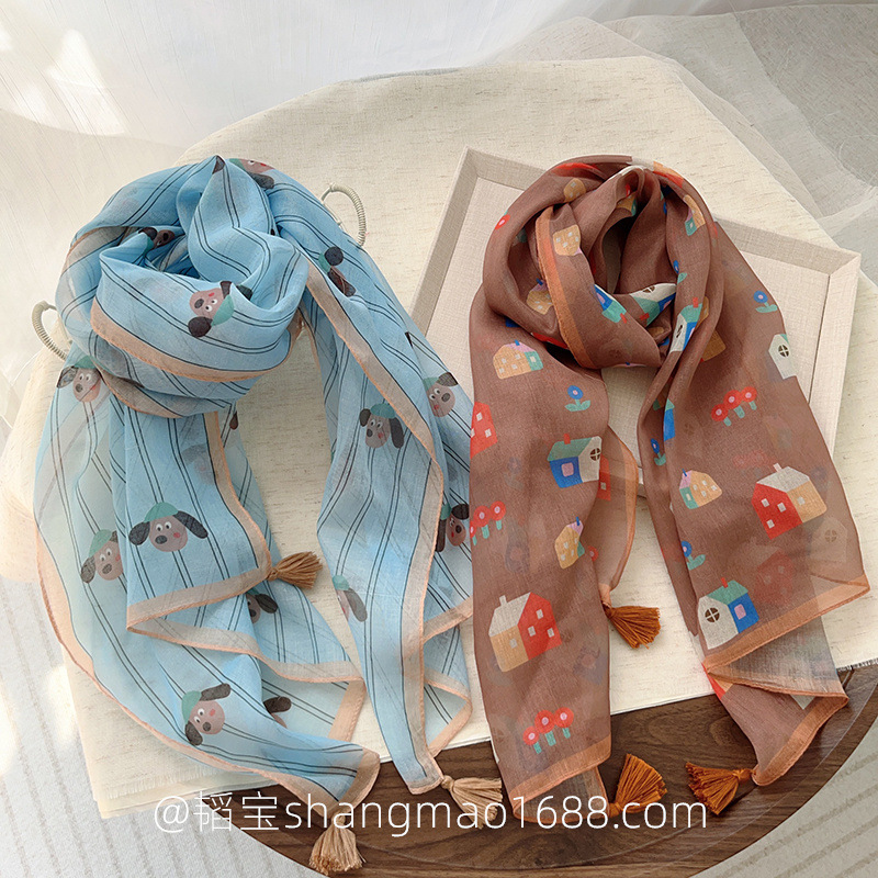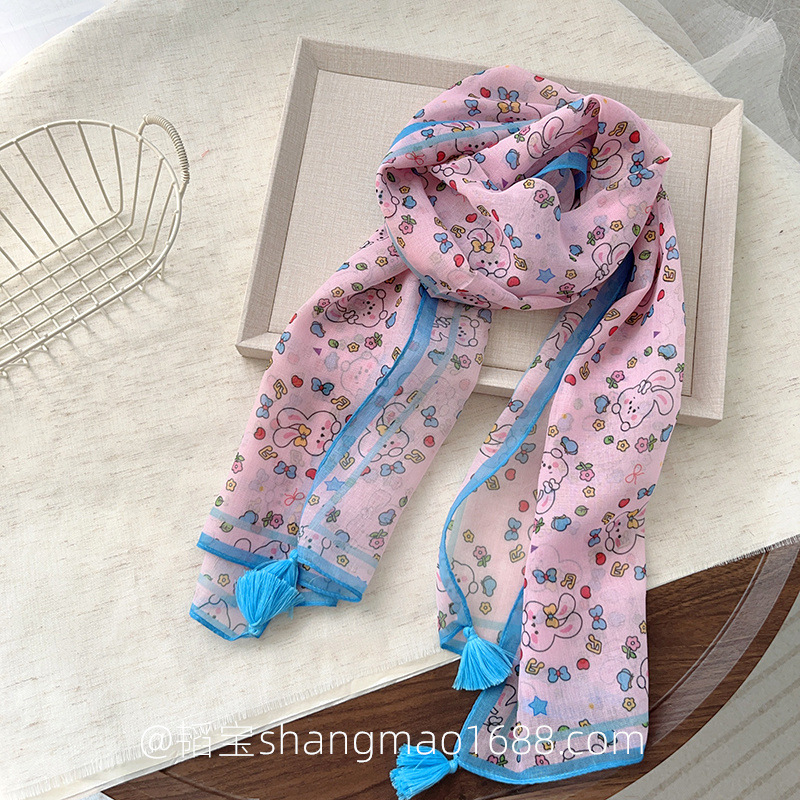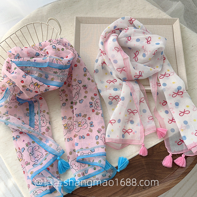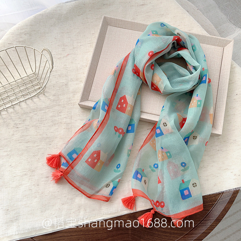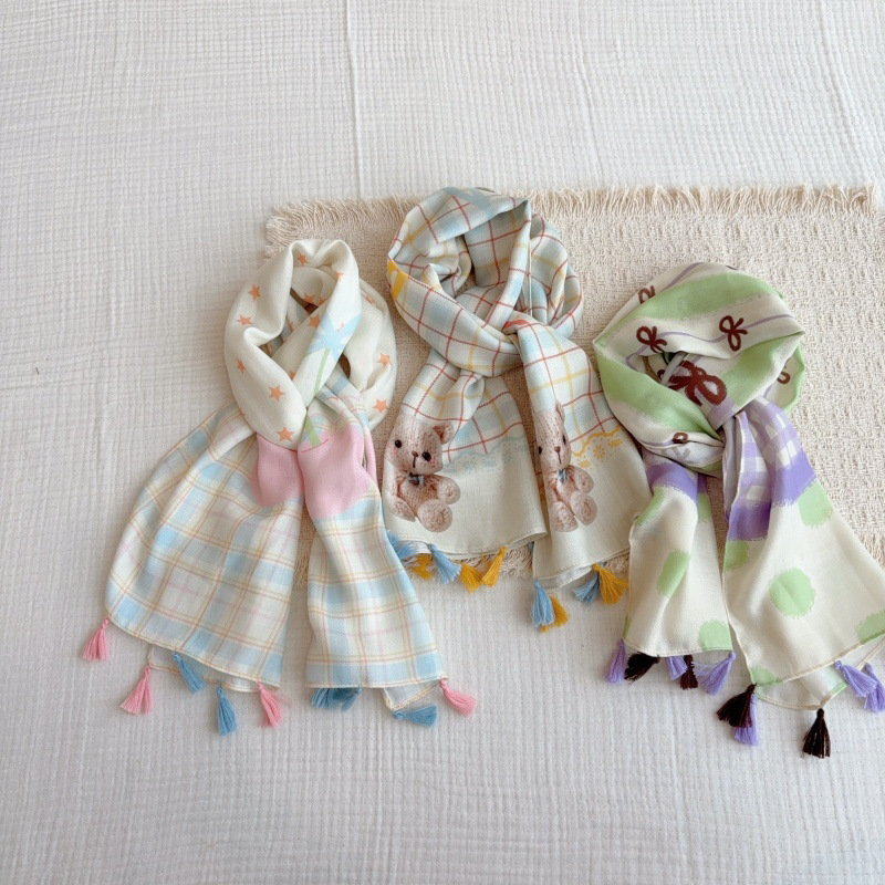 일본 복고풍 어린이 스카프 면 린넨 꽃 얇은 방풍 봄과 여름 아기의 스카프 작은 신선한 실크 스카프스토어 가기