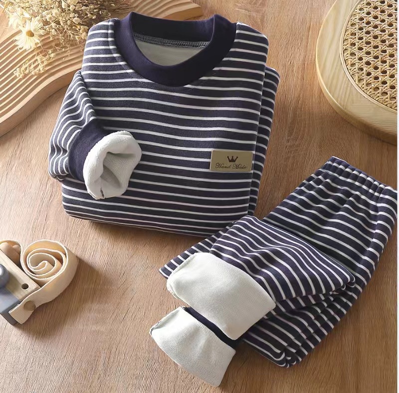 어린이 기모 열 속옷 세트 겨울 두꺼운 소년 소녀 옷 가을 옷 바지 줄무늬 홈 의류 아동복