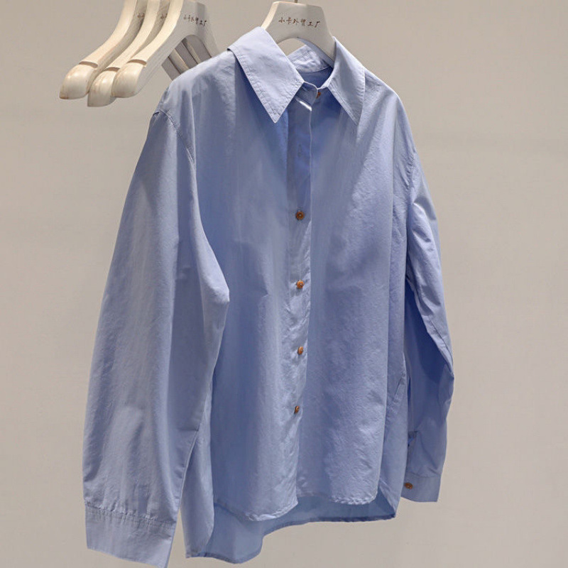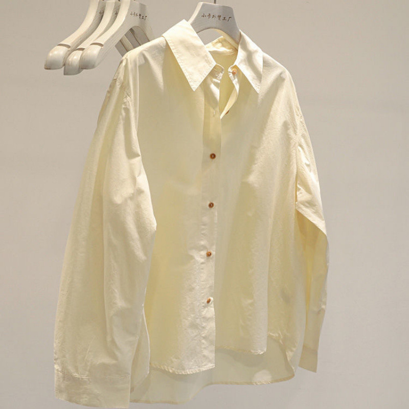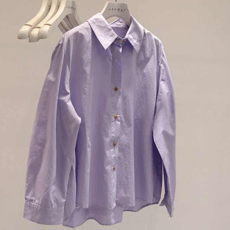 코튼 셔츠 여성용 칼라 싱글 브레스트 루즈 재킷 탑 캐주얼 긴팔 연령 감소 여성을위한 올 매치 핑크 셔츠스토어 가기