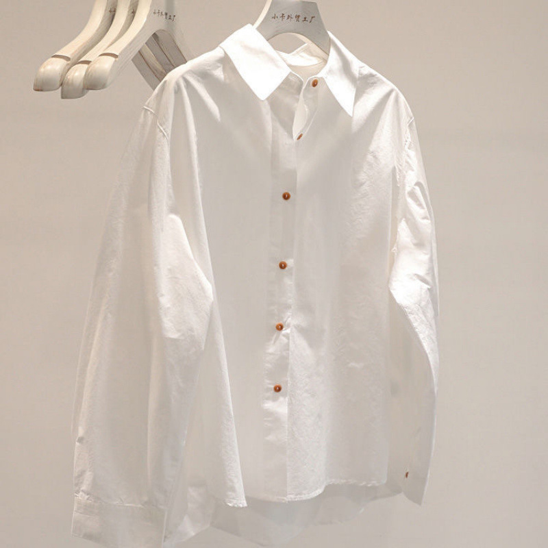 코튼 셔츠 여성용 칼라 싱글 브레스트 루즈 재킷 탑 캐주얼 긴팔 연령 감소 여성을위한 올 매치 핑크 셔츠