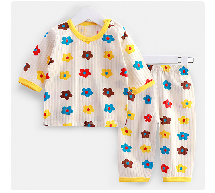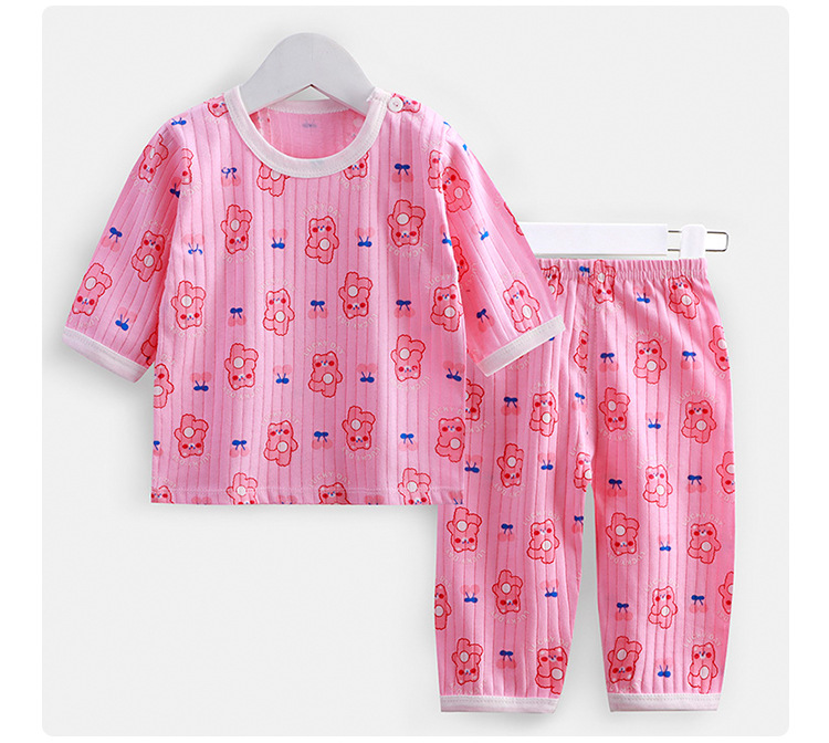2025 새로운 어린이 에어컨 의류 면 홈 의류 세트 여자 속옷 세트 아기 잠옷 아동복 도매