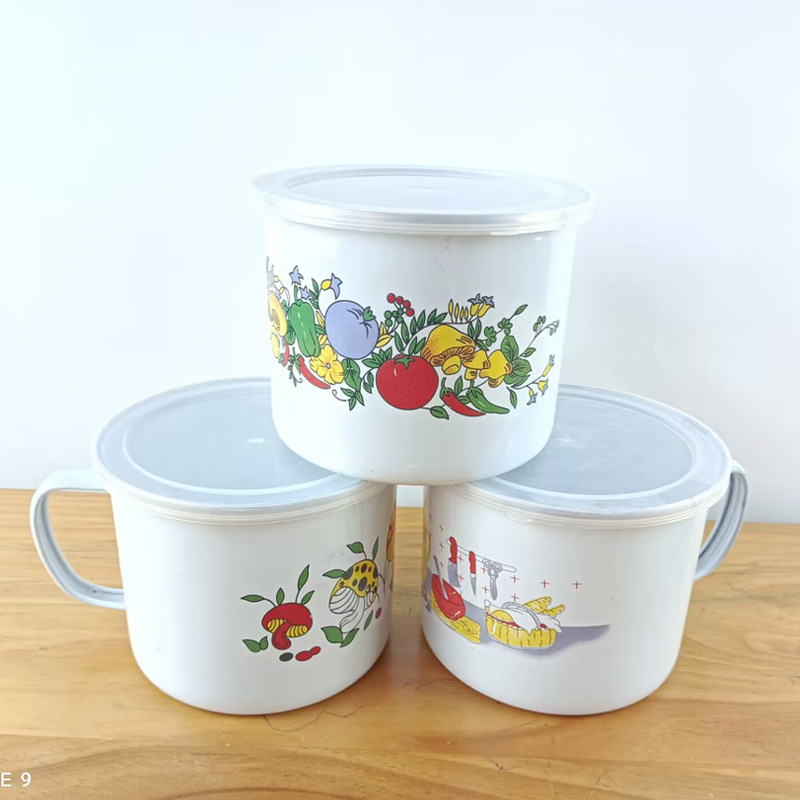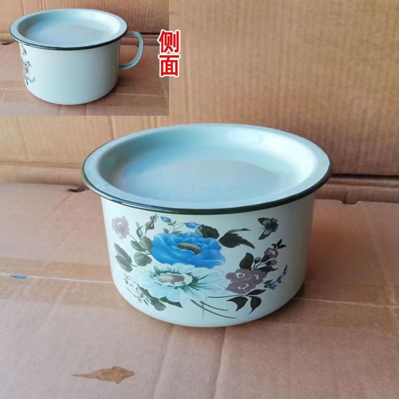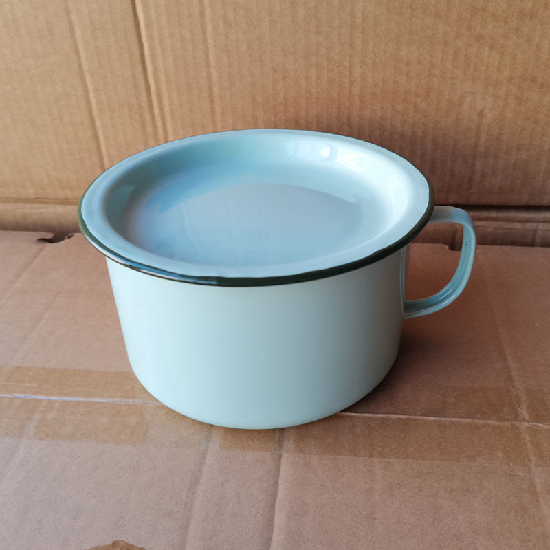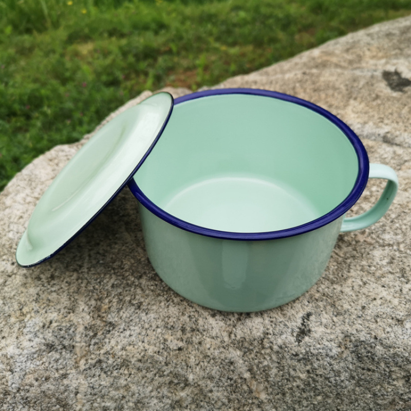 에나멜 보울을 먹는 학생과 성인을위한 큰 구식 에나멜 보울 런치 박스 팟 싱크 보울이있는 에나멜 패스트 푸드 컵