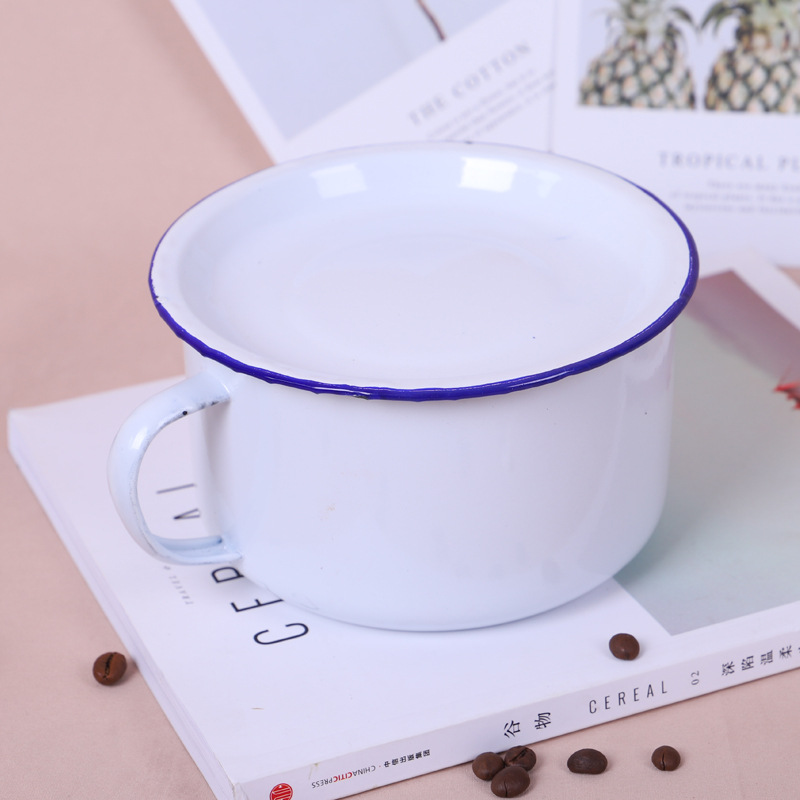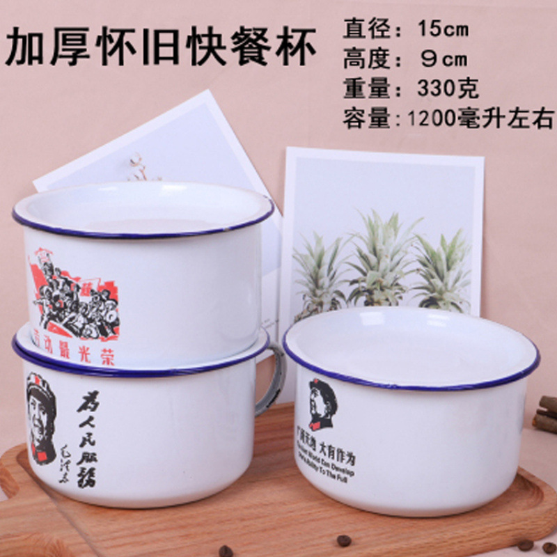 에나멜 보울을 먹는 학생과 성인을위한 큰 구식 에나멜 보울 런치 박스 팟 싱크 보울이있는 에나멜 패스트 푸드 컵스토어 가기