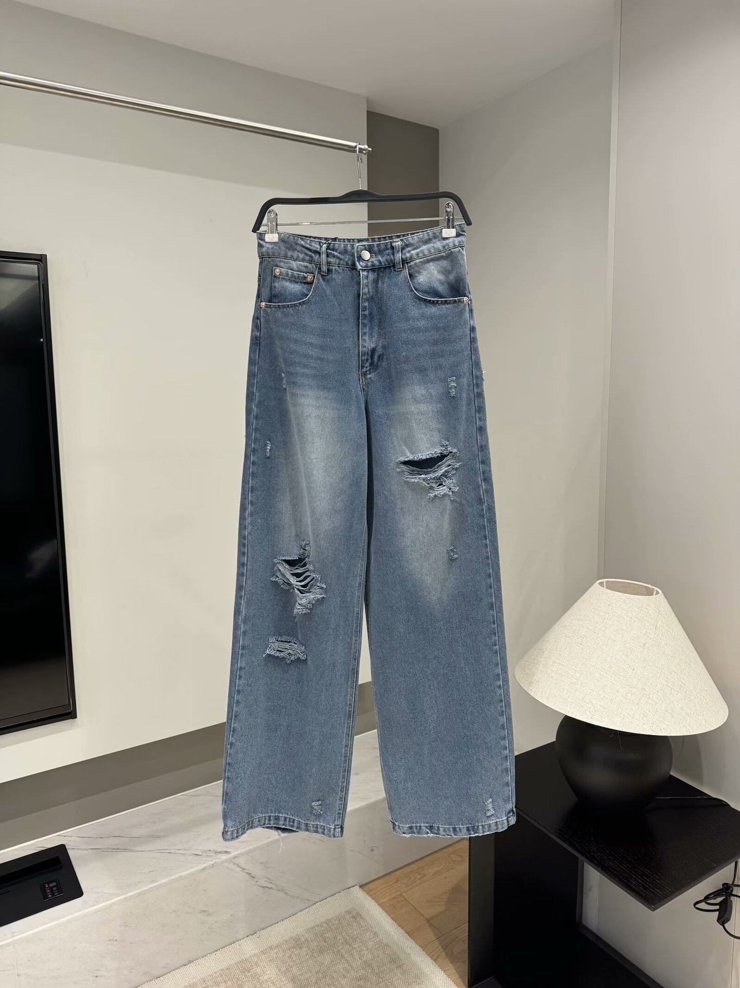 UC & ZA 국경 간 AliExpress 여성복 유럽과 미국 스타일 높은 허리 캐주얼 찢어진 면 느슨한 청바지 8197021스토어 가기