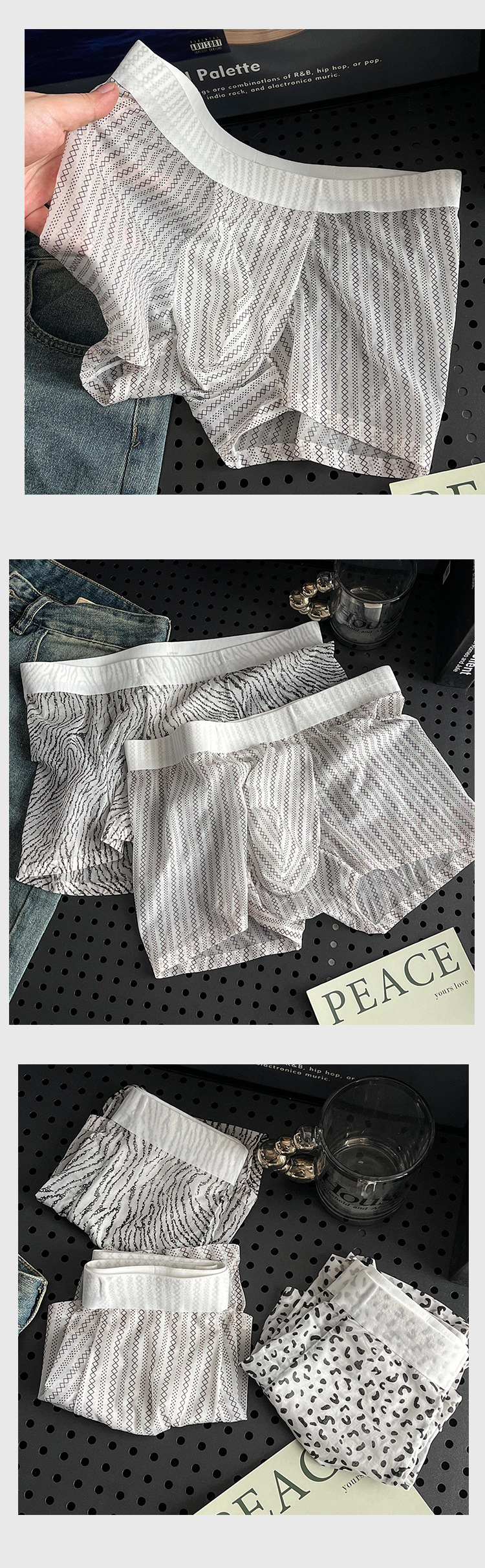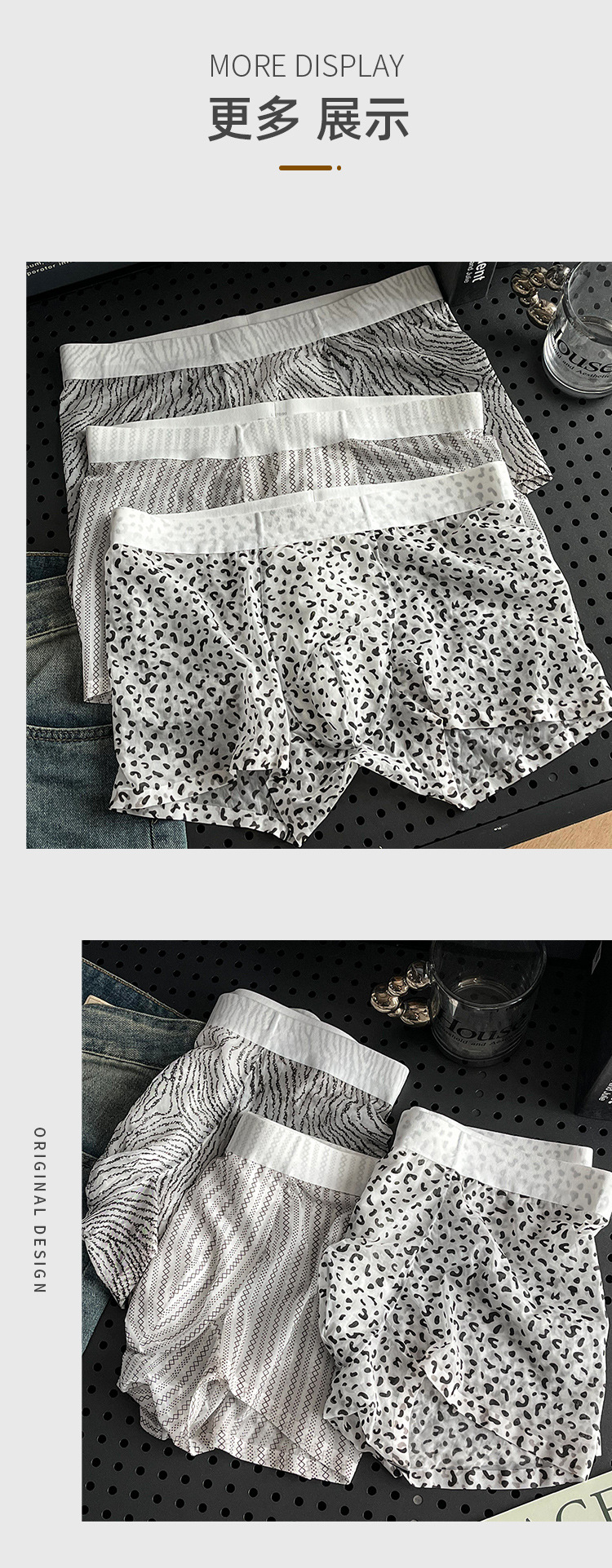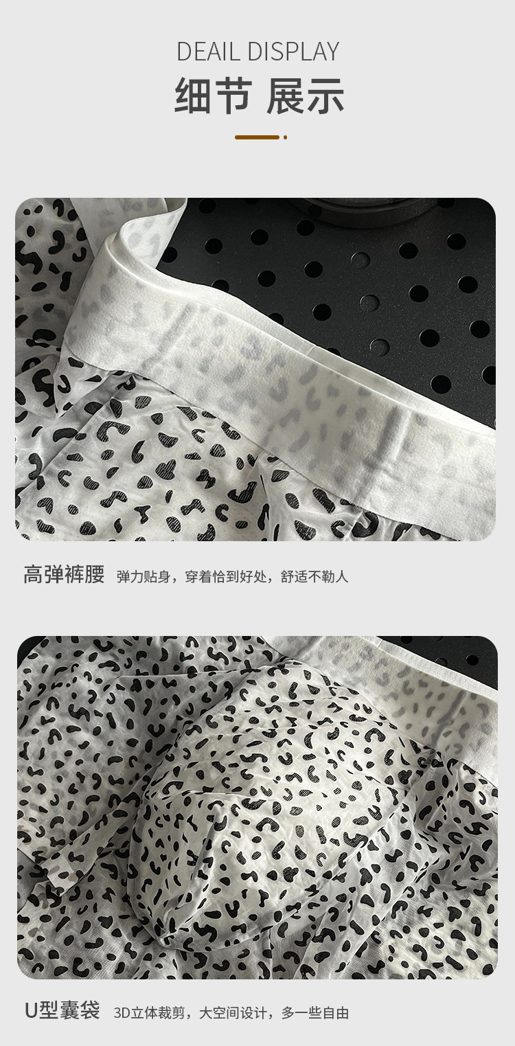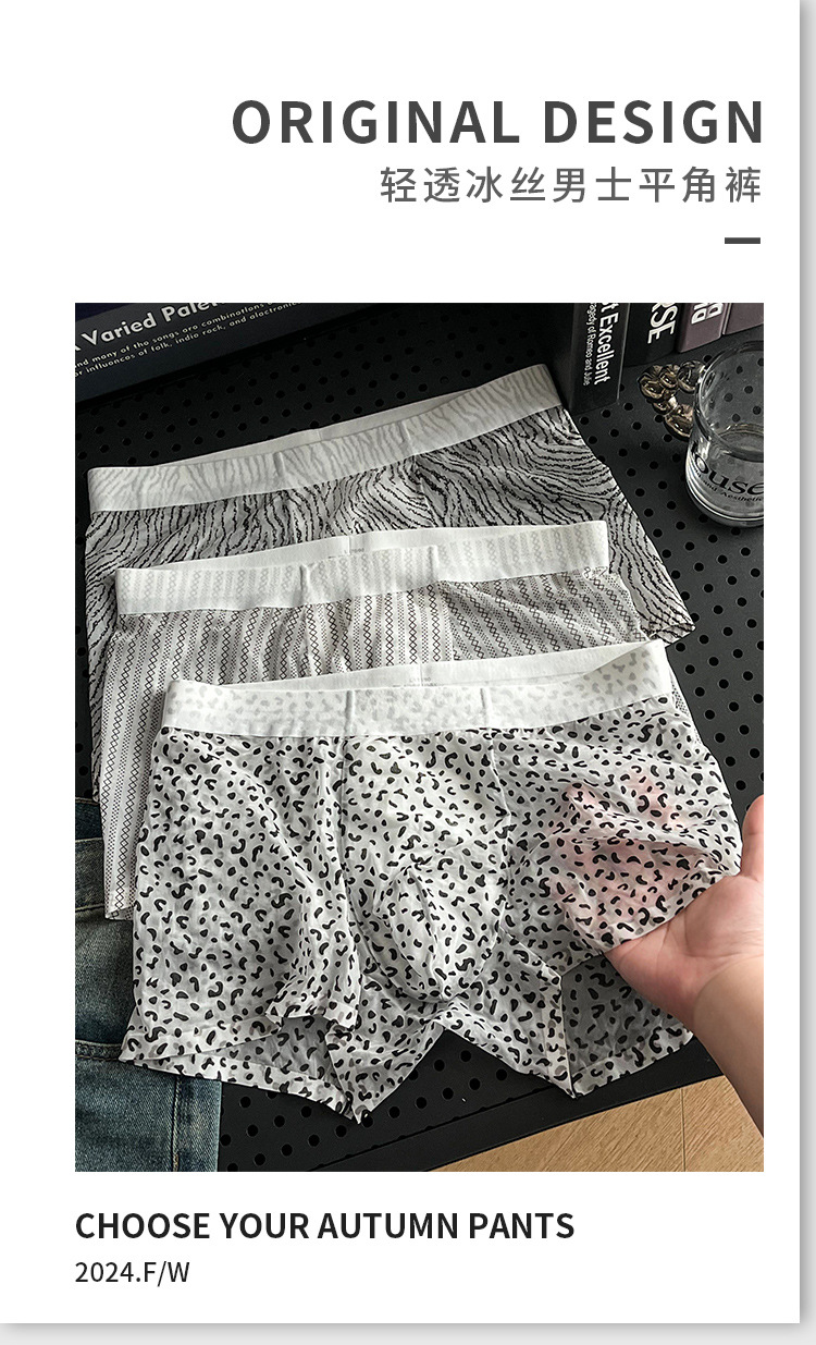 히알루 론산 남성 섹시 팬티 아이스 실크 레오파드 프린트 남성 플로팅 초박형 복서 반바지 프린트 폴카 도트