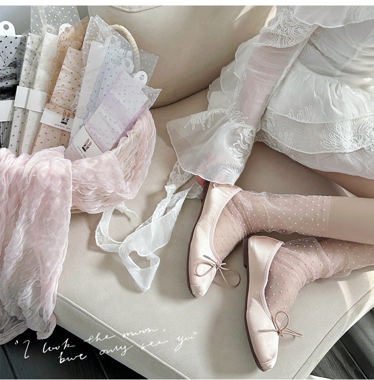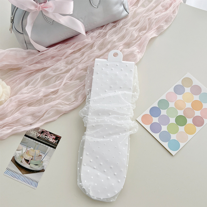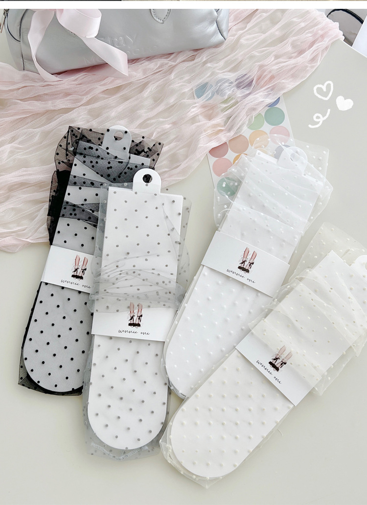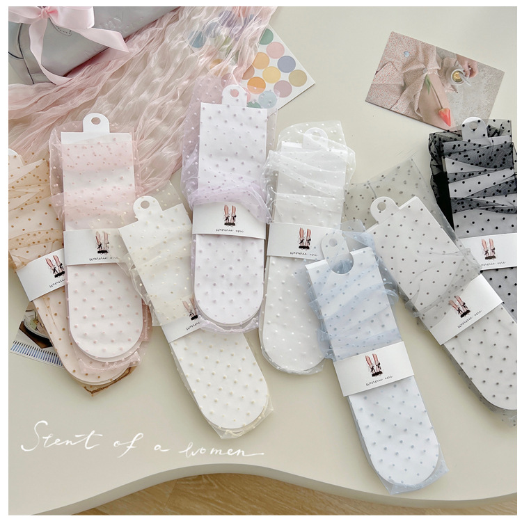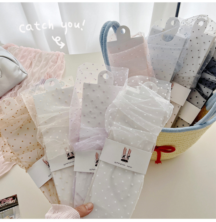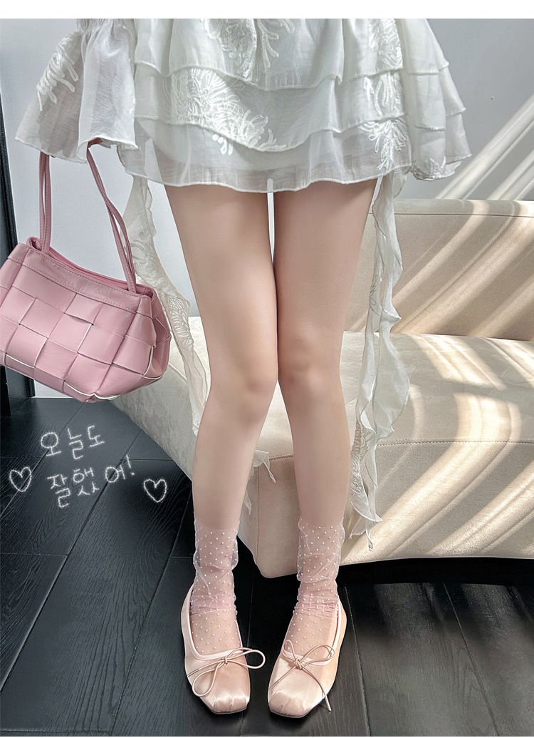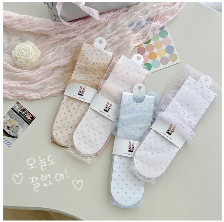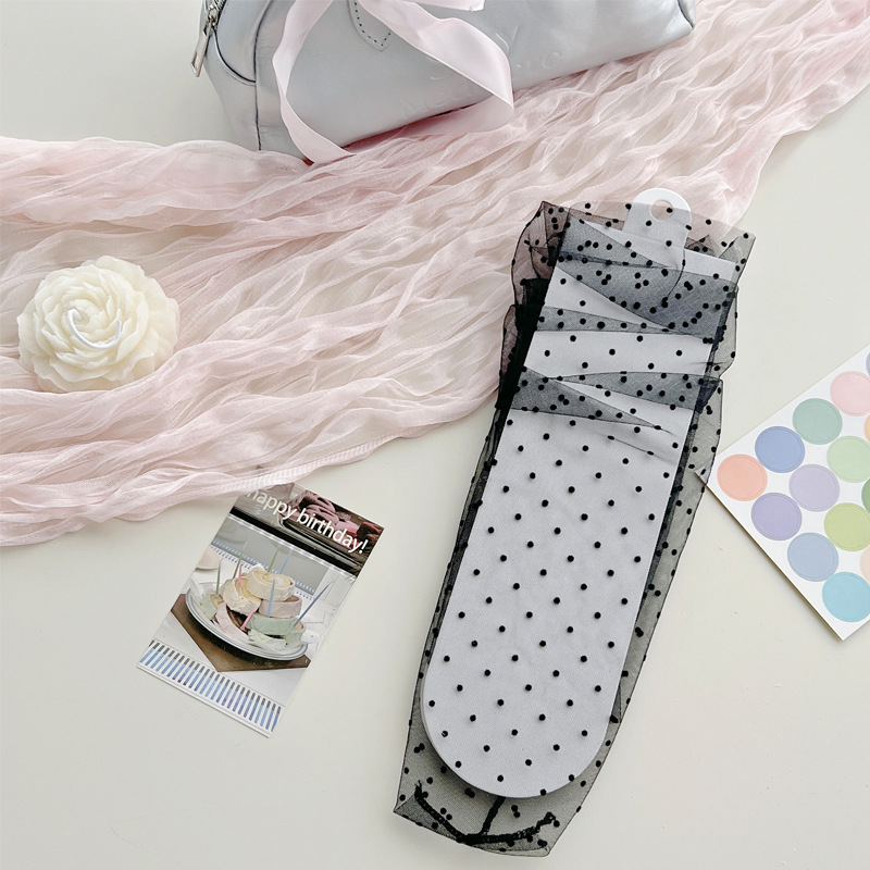 여성용 양말 2025 봄과 여름 새로운 도착 한국 스타일 레이스 작은 도트 메쉬 미드 양말 편안한 통기성 스택 양말
