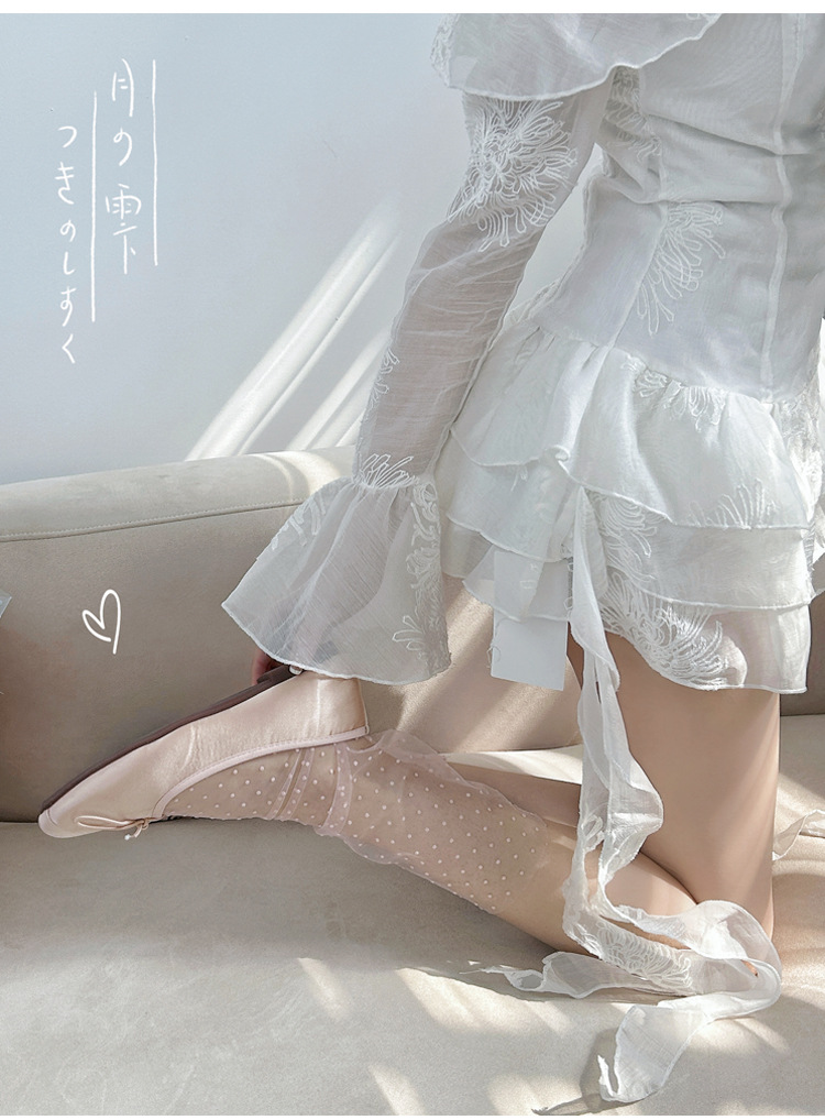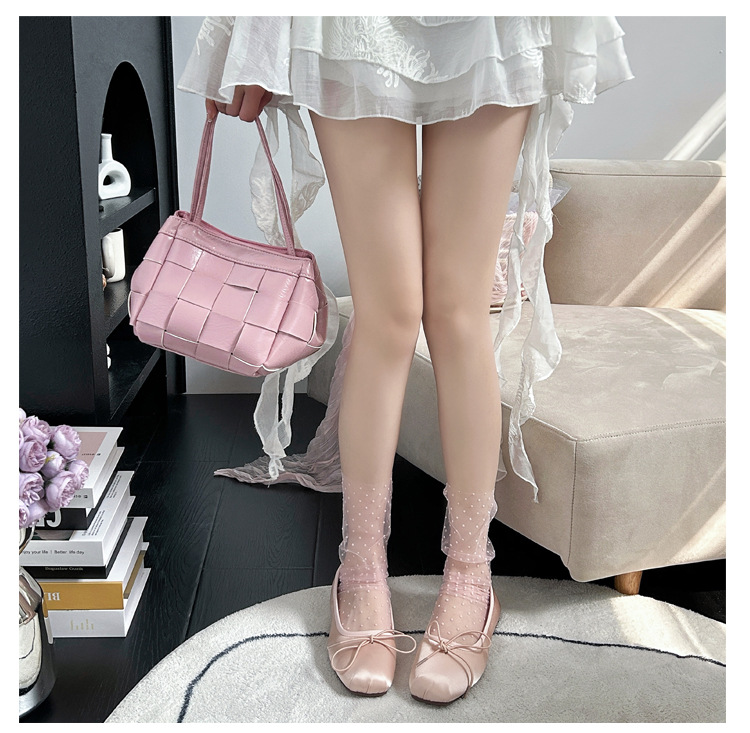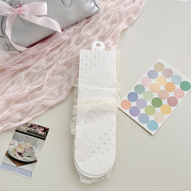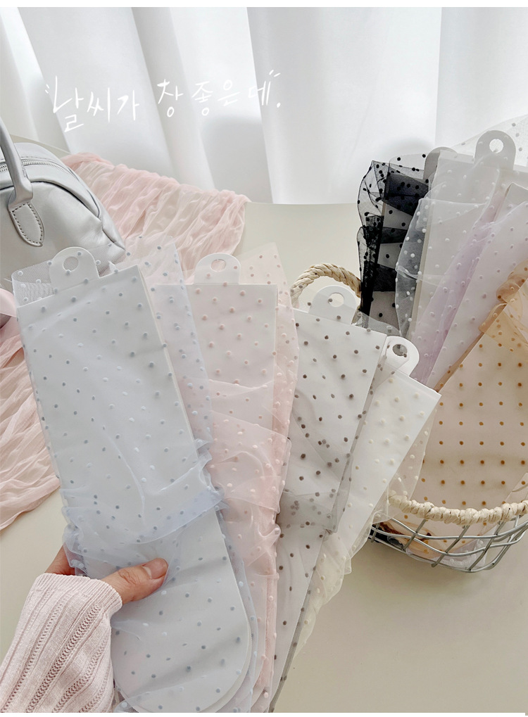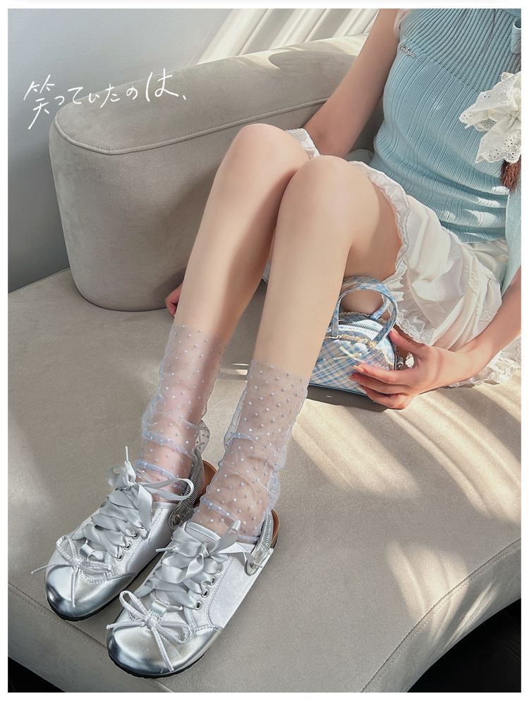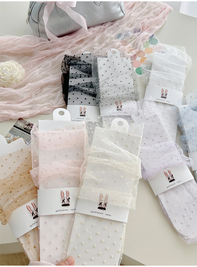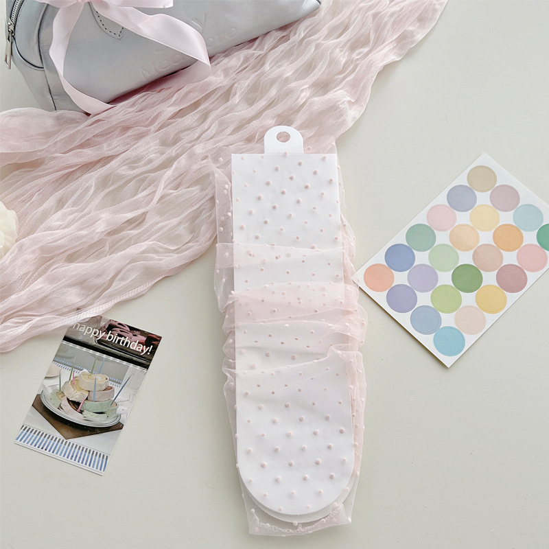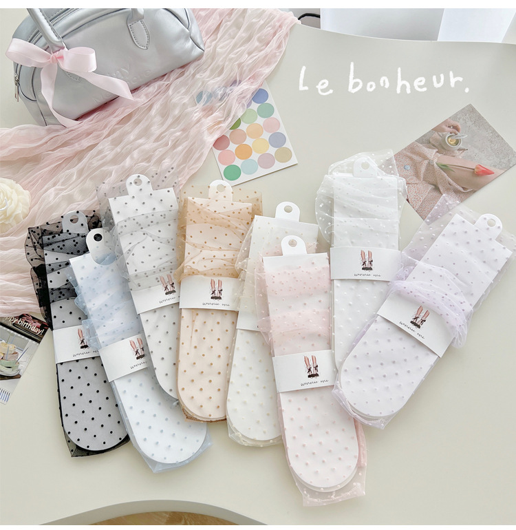 여성용 양말 2025 봄과 여름 새로운 도착 한국 스타일 레이스 작은 도트 메쉬 미드 양말 편안한 통기성 스택 양말
