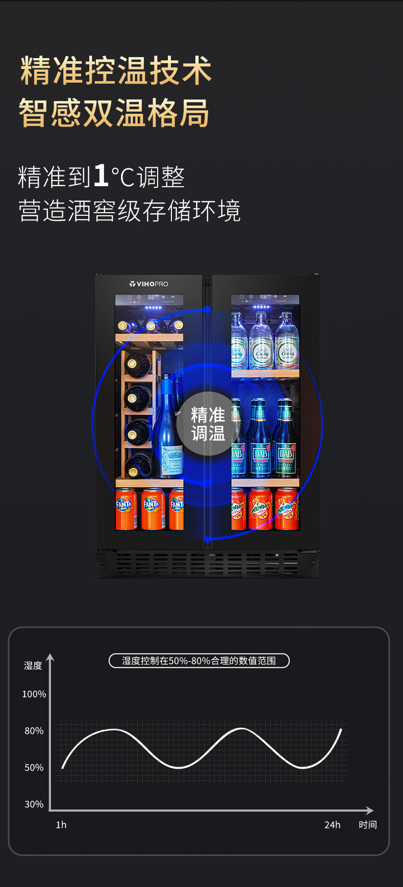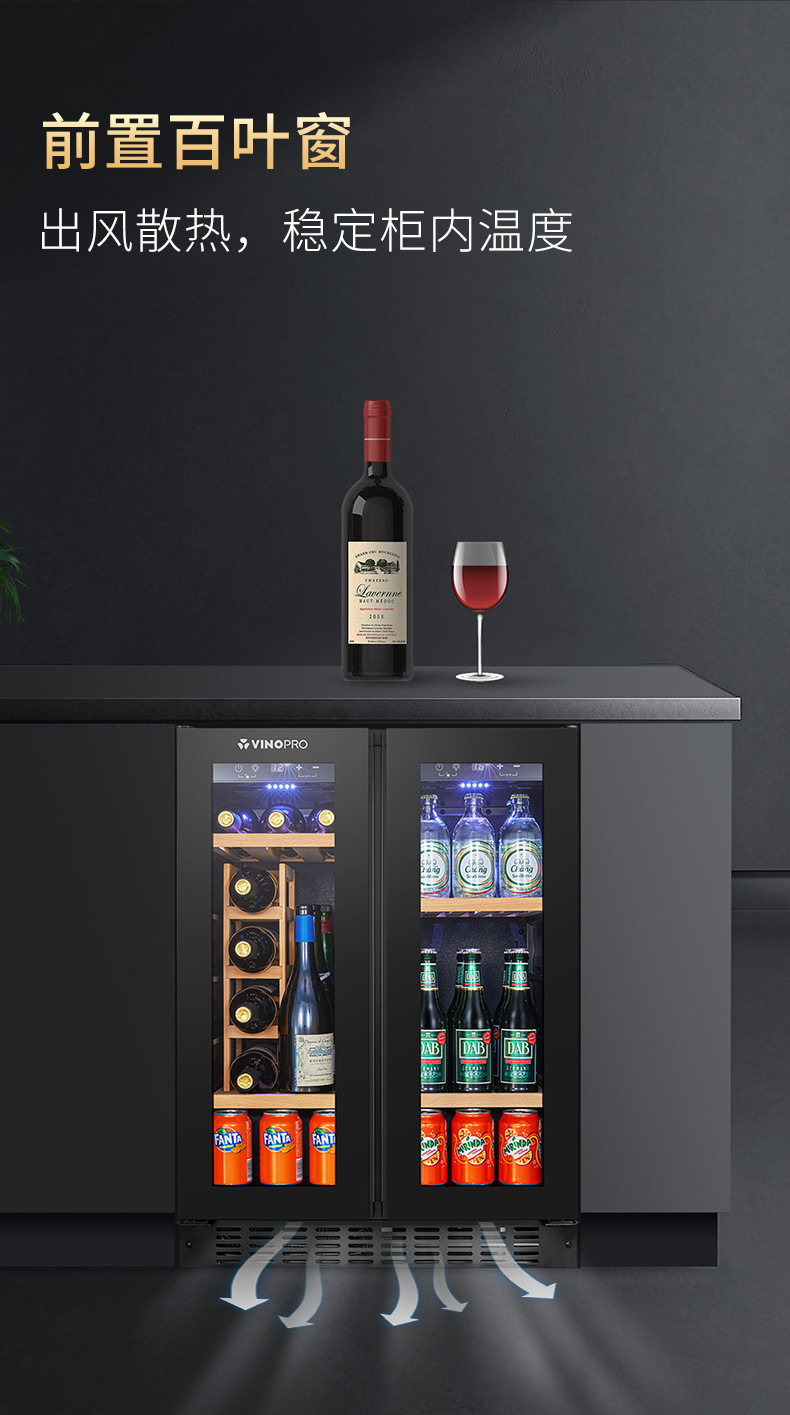VINOPRO/BU-96D 레드 와인 캐비닛 내장 슬림 공냉식 항온 차 가정용 양문형 냉장 캐비닛 아이스 바