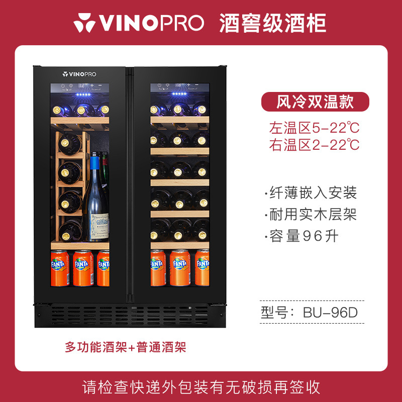 VINOPRO/BU-96D 레드 와인 캐비닛 내장 슬림 공냉식 항온 차 가정용 양문형 냉장 캐비닛 아이스 바스토어 가기
