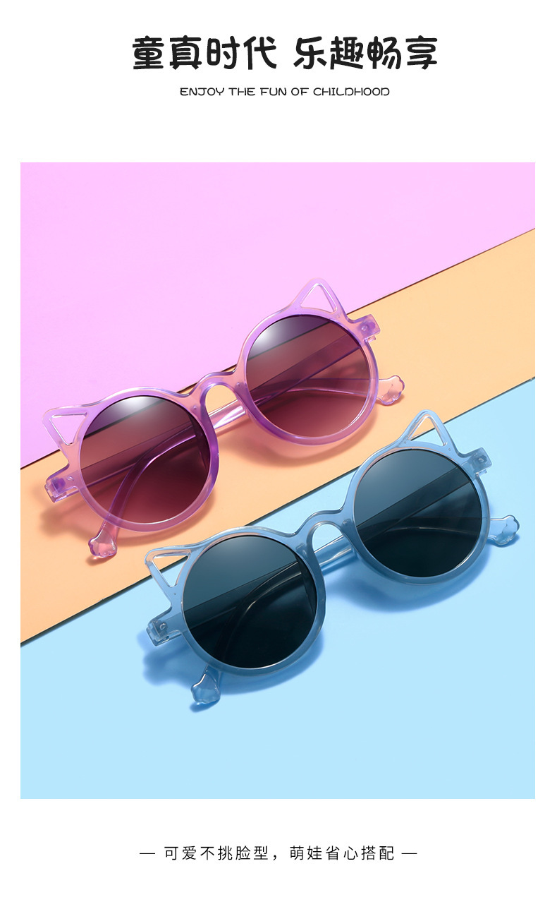 남성용 및 여성용 선글라스, 어린이용 자외선 차단 선글라스, 귀여운 아기용 차양, 만화 고양이 귀 원형 프레임 안경