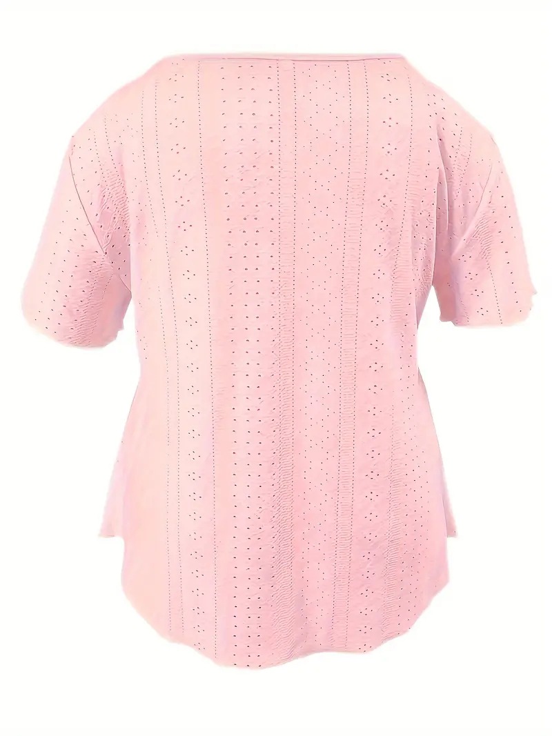 2025 국경을 넘는 유럽과 미국의 봄과 여름 새로운 플러스 사이즈 숙녀 편안한 통기성 반팔 V 넥 티셔츠
