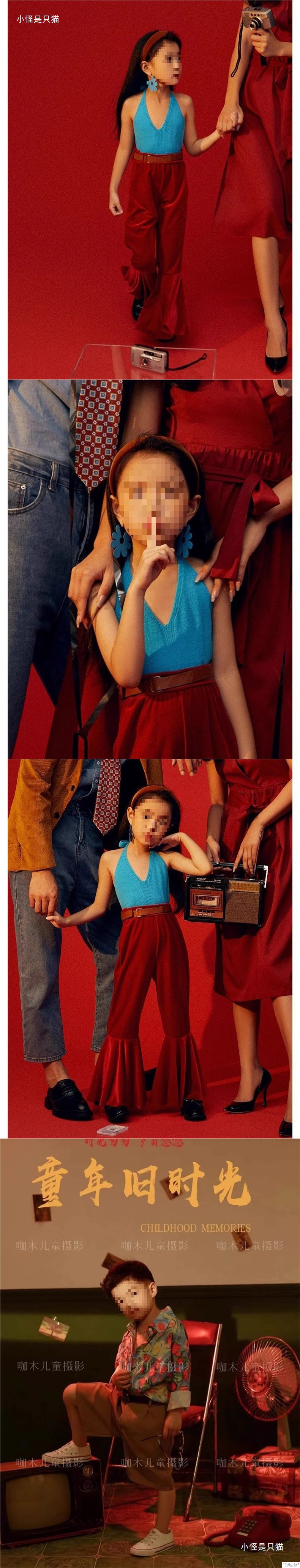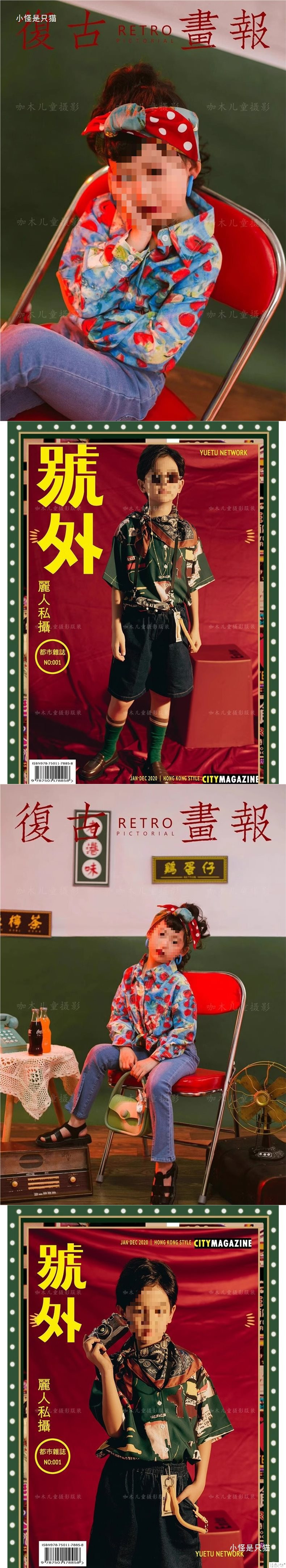 어린이 사진 의류 향수 레트로 홍콩 스타일 어린이 의류 소년 소녀 8090 무대 쇼 의상