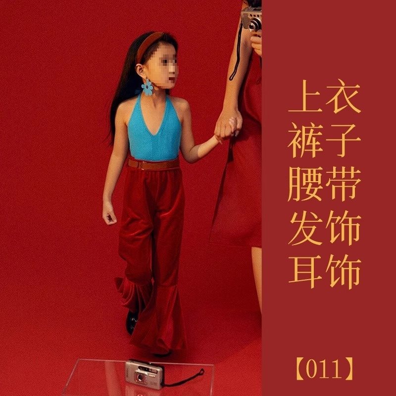 • 【011】레이크 블루 탑 + 바지 + 벨트 + 헤어 액세서리 + 귀걸이