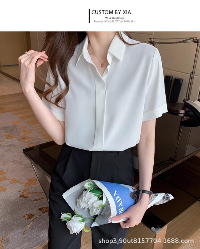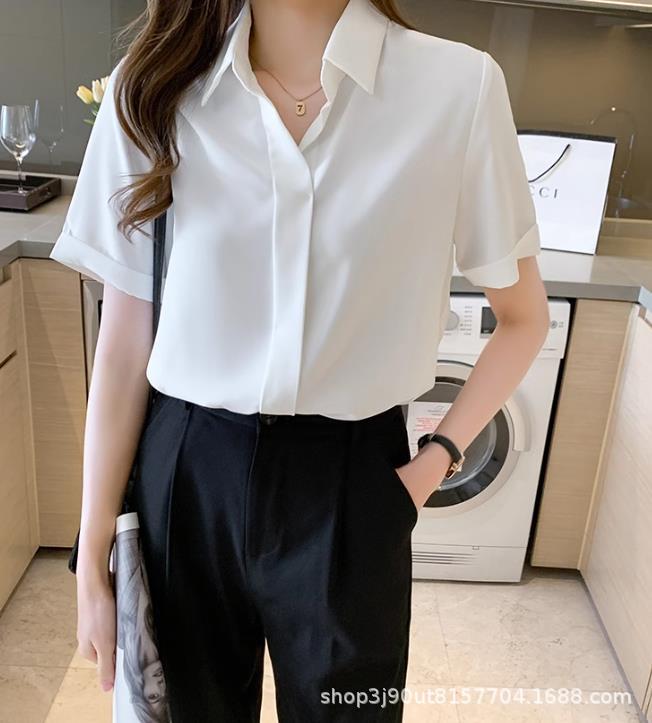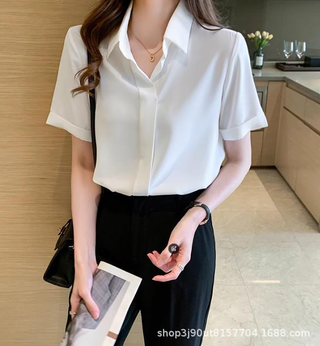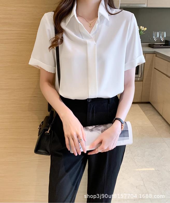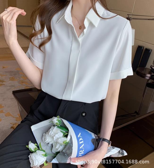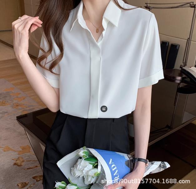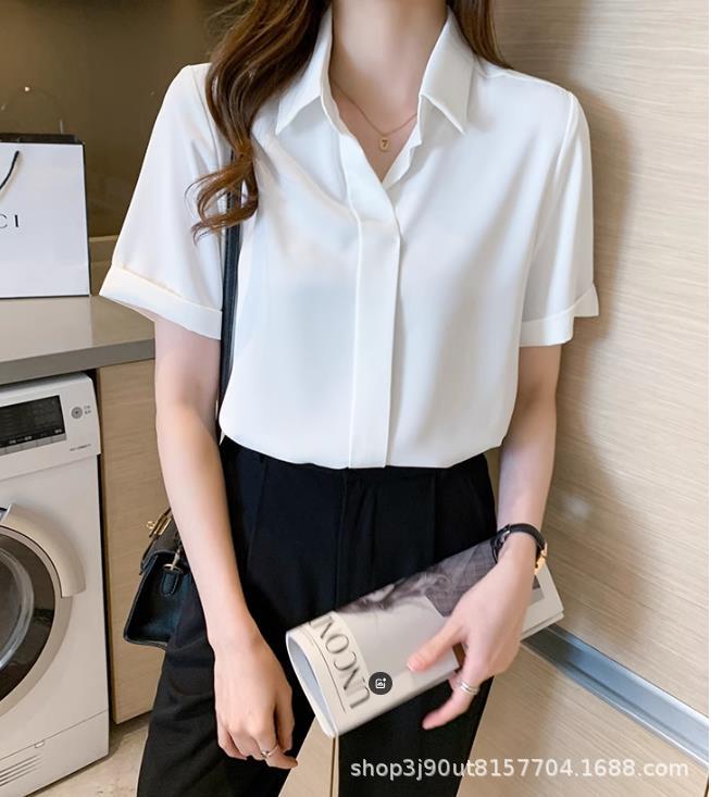 반팔 셔츠 여성 디자인 센스 니쉬 여름 새로운 패션 웨스턴 스타일 쉬폰 셔츠 캐주얼 프로 탑 트렌디 올매치스토어 가기