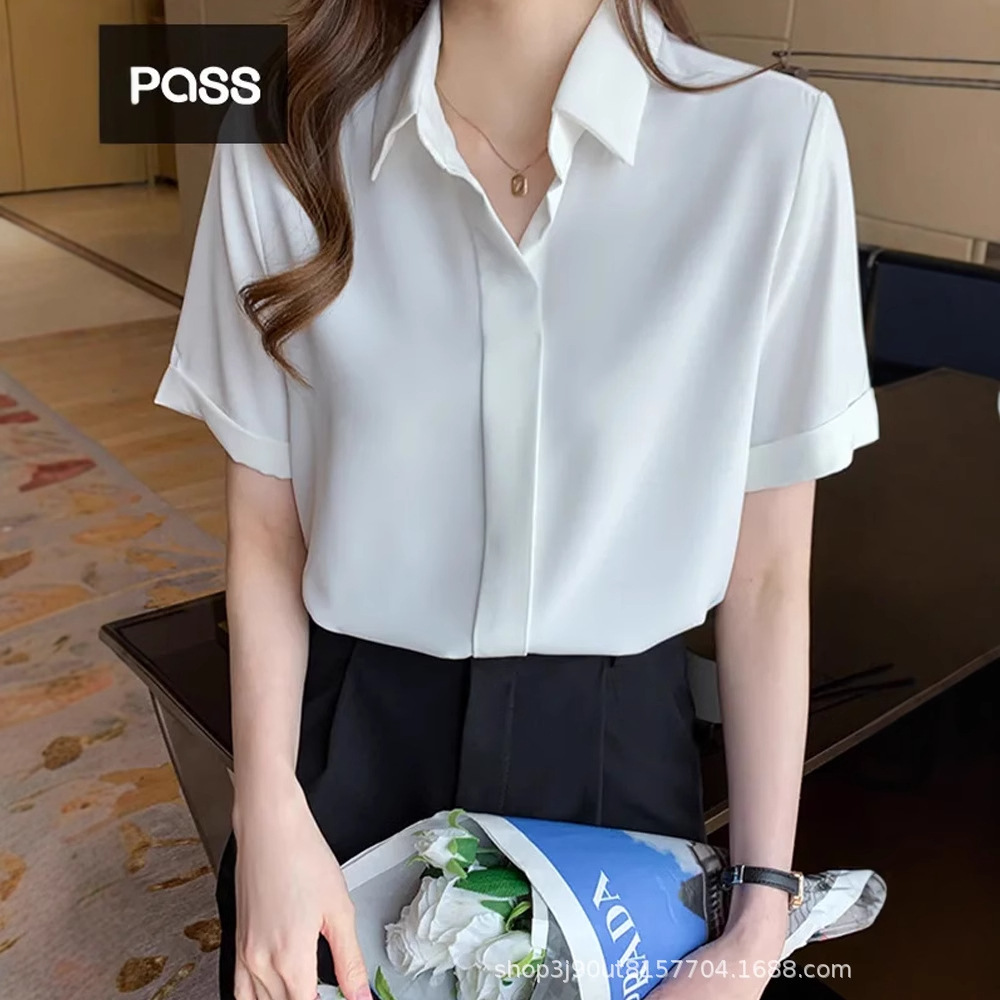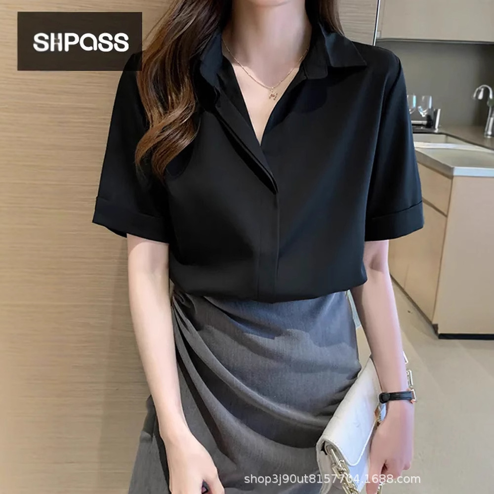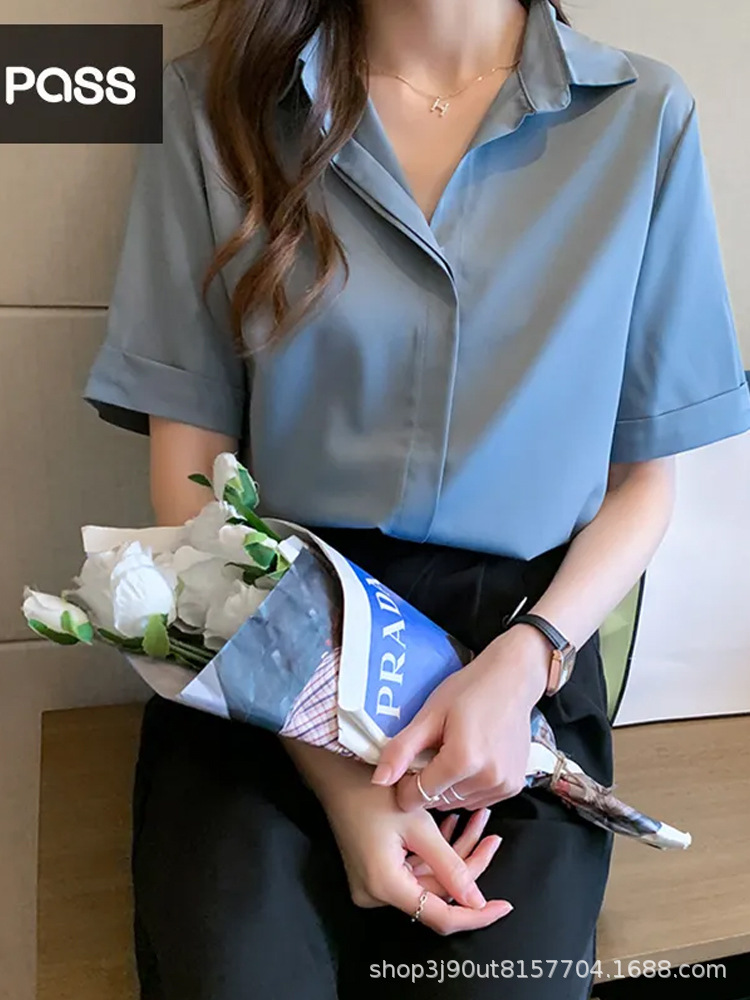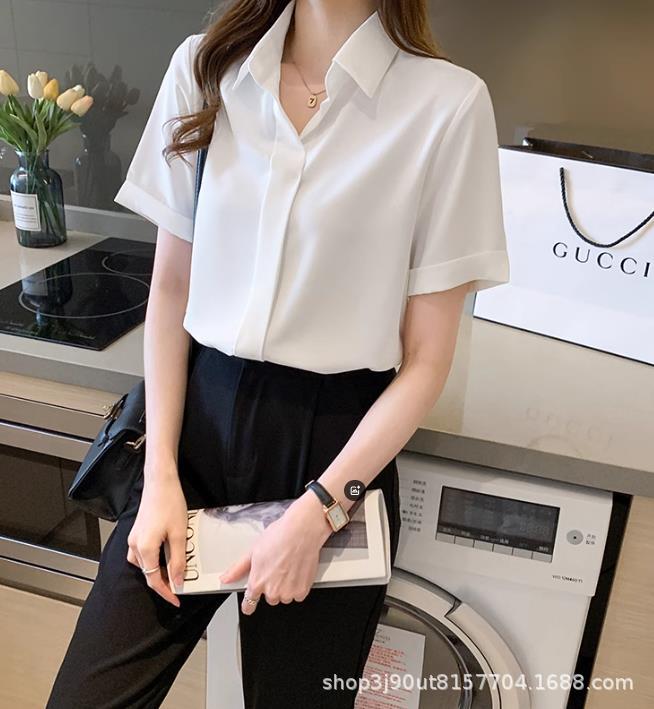 반팔 셔츠 여성 디자인 센스 니쉬 여름 새로운 패션 웨스턴 스타일 쉬폰 셔츠 캐주얼 프로 탑 트렌디 올매치스토어 가기