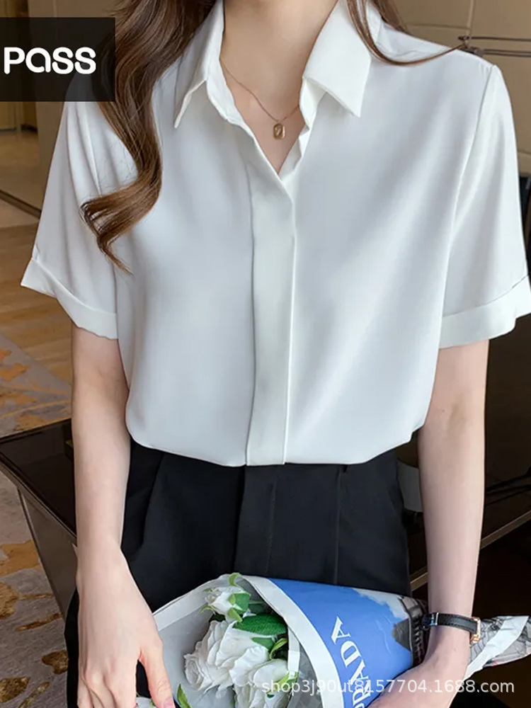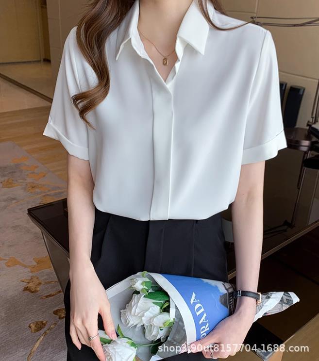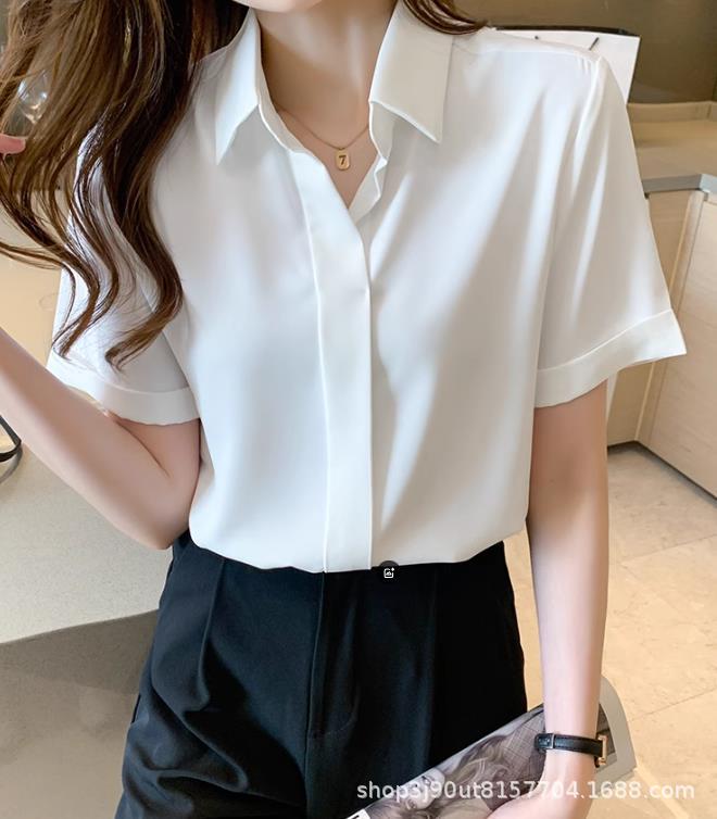 반팔 셔츠 여성 디자인 센스 니쉬 여름 새로운 패션 웨스턴 스타일 쉬폰 셔츠 캐주얼 프로 탑 트렌디 올매치