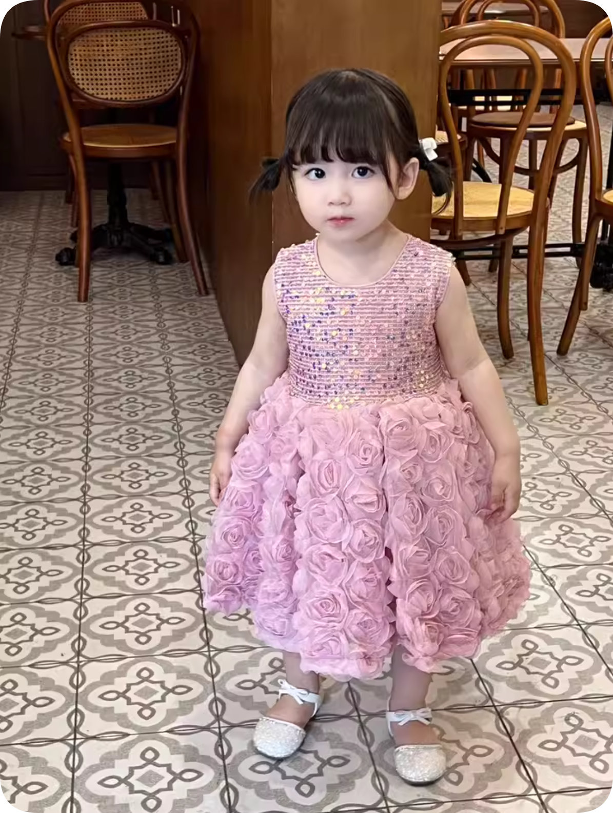 소녀 원피스 3 차원 장미 꽃 빛 럭셔리 달콤한 여름 푹신한 공주 원피스 1 년 된 원피스 원피스 여성 보물 꽃 소녀