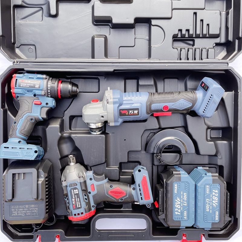 독일 다기능 리튬 배터리 도구 4 피스 전기 해머 전기 드릴 앵글 그라인더 전기 렌치 한 손으로 전기 체인 톱을 보았다