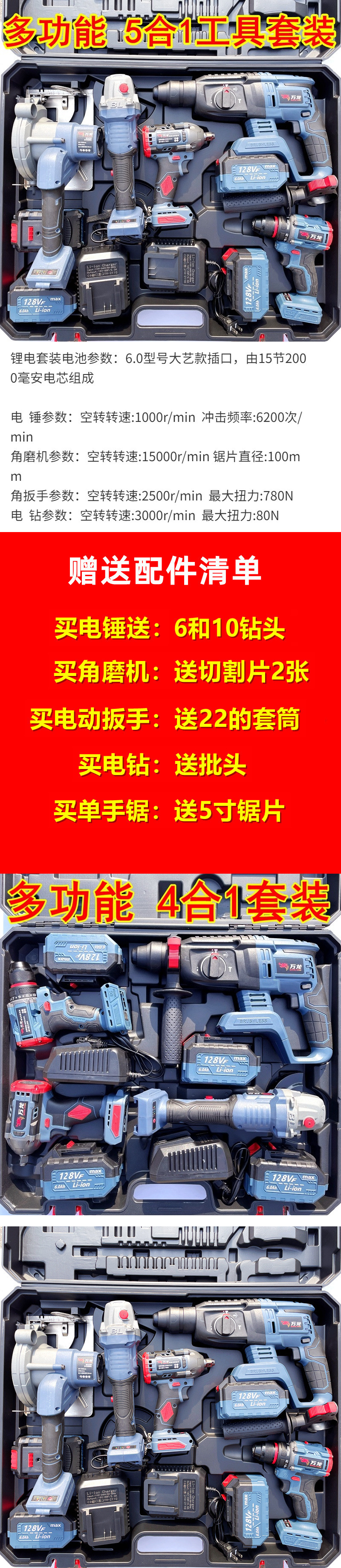 • 5종 세트] 원형톱 + 전동 해머 + 그라인더 + 전동 렌치 + 소형 강철 대포 4 전동