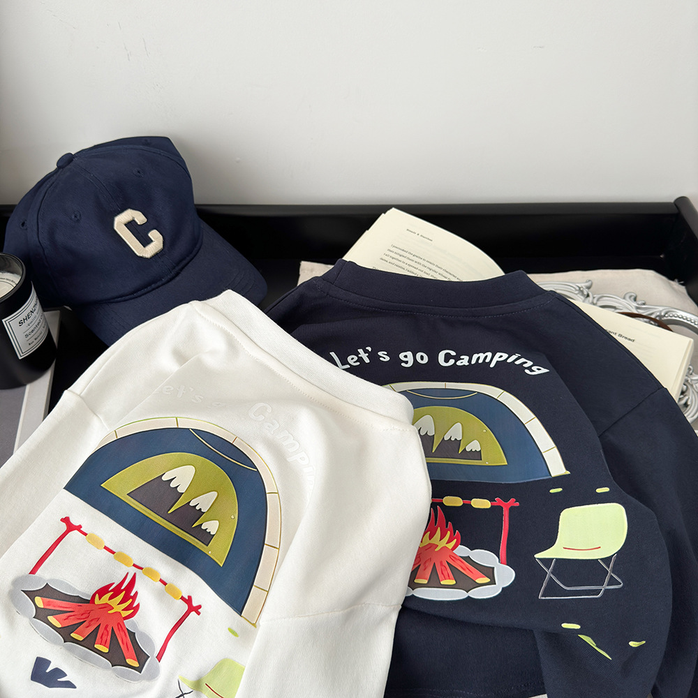 봄과 가을 새로운 어린이 면 티셔츠 스웨터 만화 캐주얼 베이스 셔츠 소년 한국식 올 매치 긴팔 탑스토어 가기