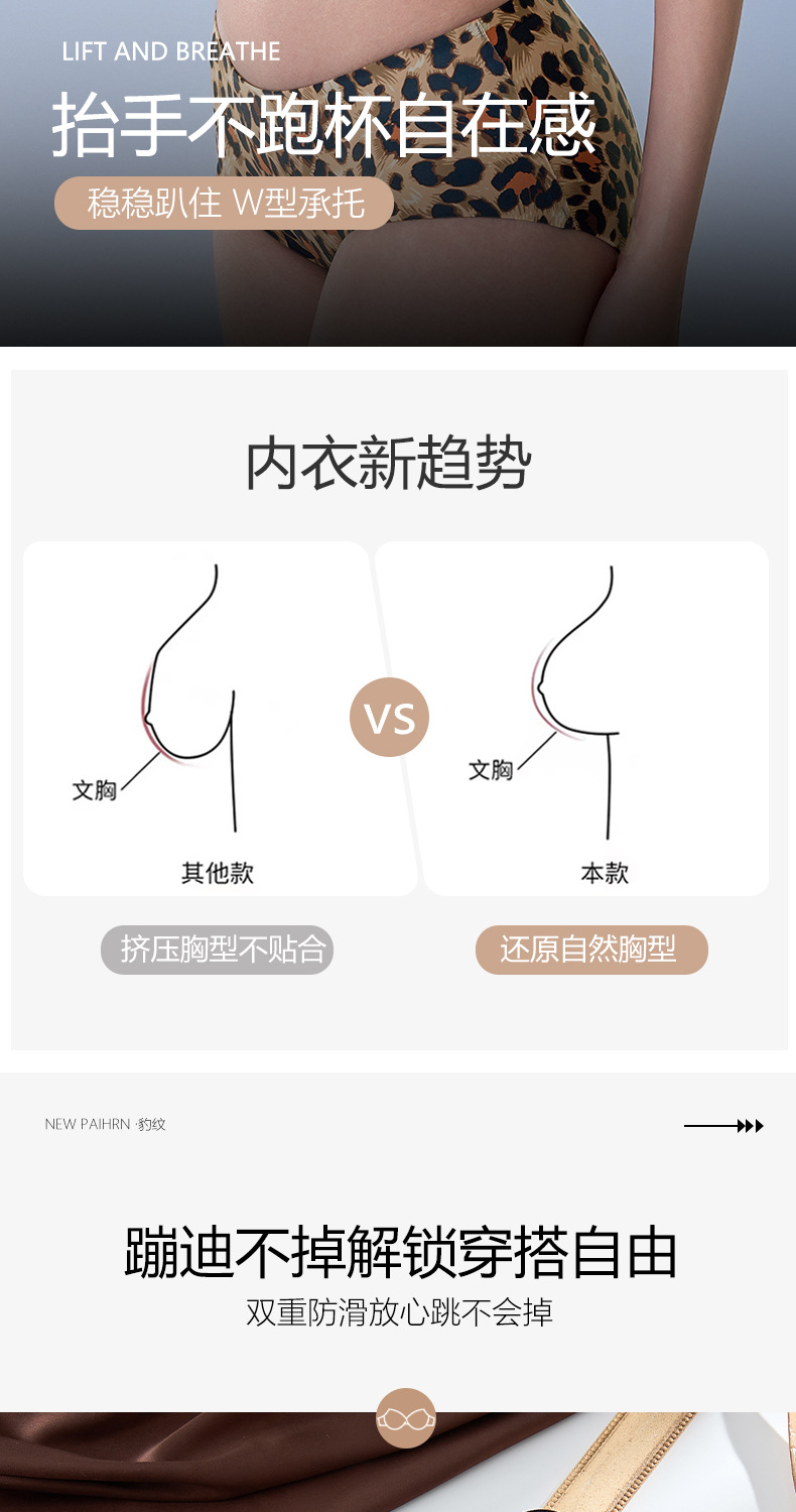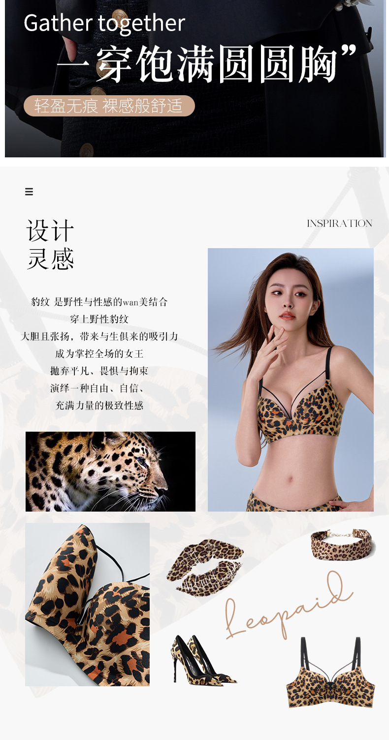 여성을 위한 심리스 푸쉬업 브라, 섹시한 순수한 욕망, 큰 가슴을 보여주는 통기성 레오파드 프린트 작은 가슴, 와이어 프리 브라스토어 가기