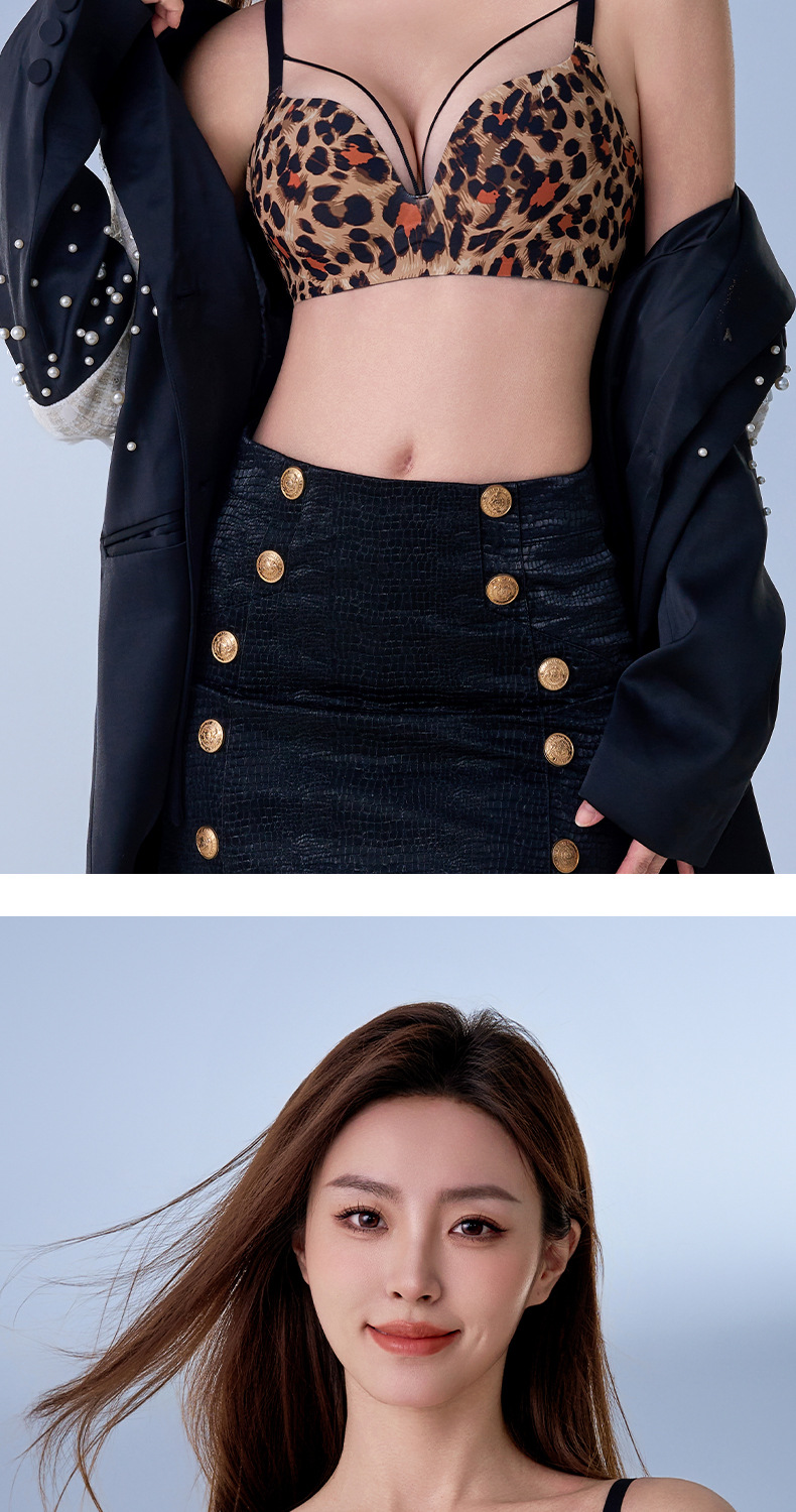 여성을 위한 심리스 푸쉬업 브라, 섹시한 순수한 욕망, 큰 가슴을 보여주는 통기성 레오파드 프린트 작은 가슴, 와이어 프리 브라