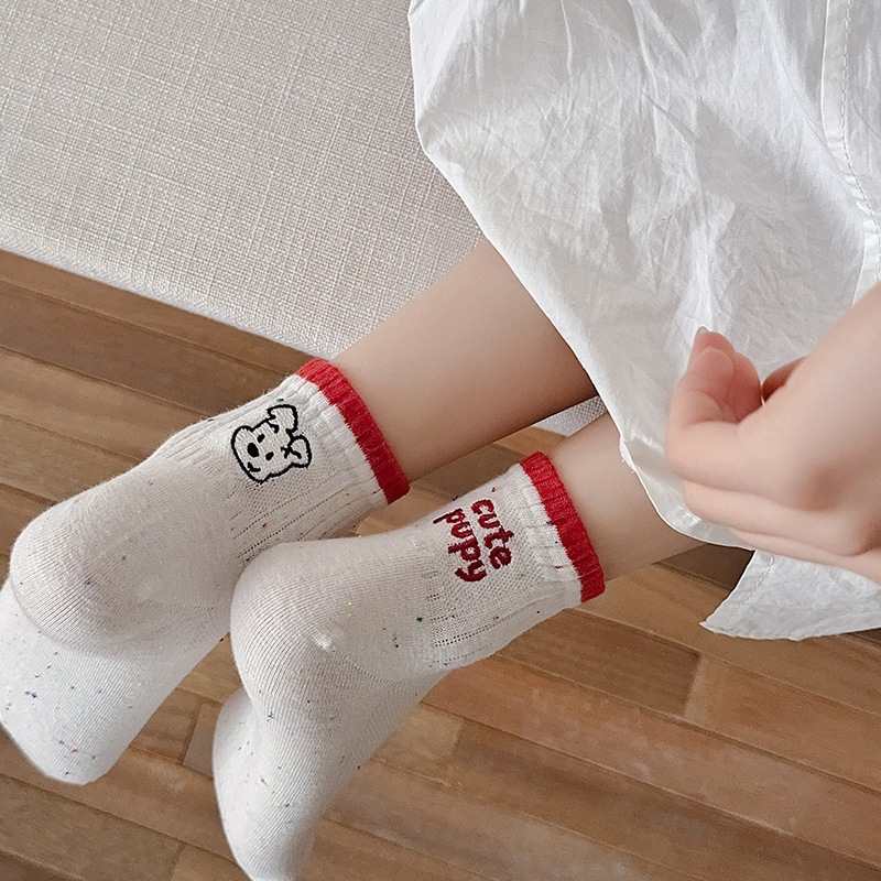 2025 봄과 여름 새로운 패션 양말 한국 바람 자수 강아지 편지 AB 양말 패션 여성 양면스토어 가기