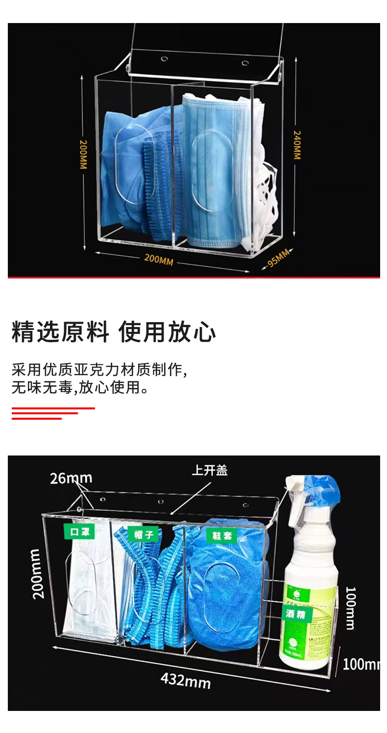 투명 상자 일회용 라텍스 장갑 저장 상자 신발 커버 마스크 모자 상자 아크릴 벽 교수형 펀치 무료