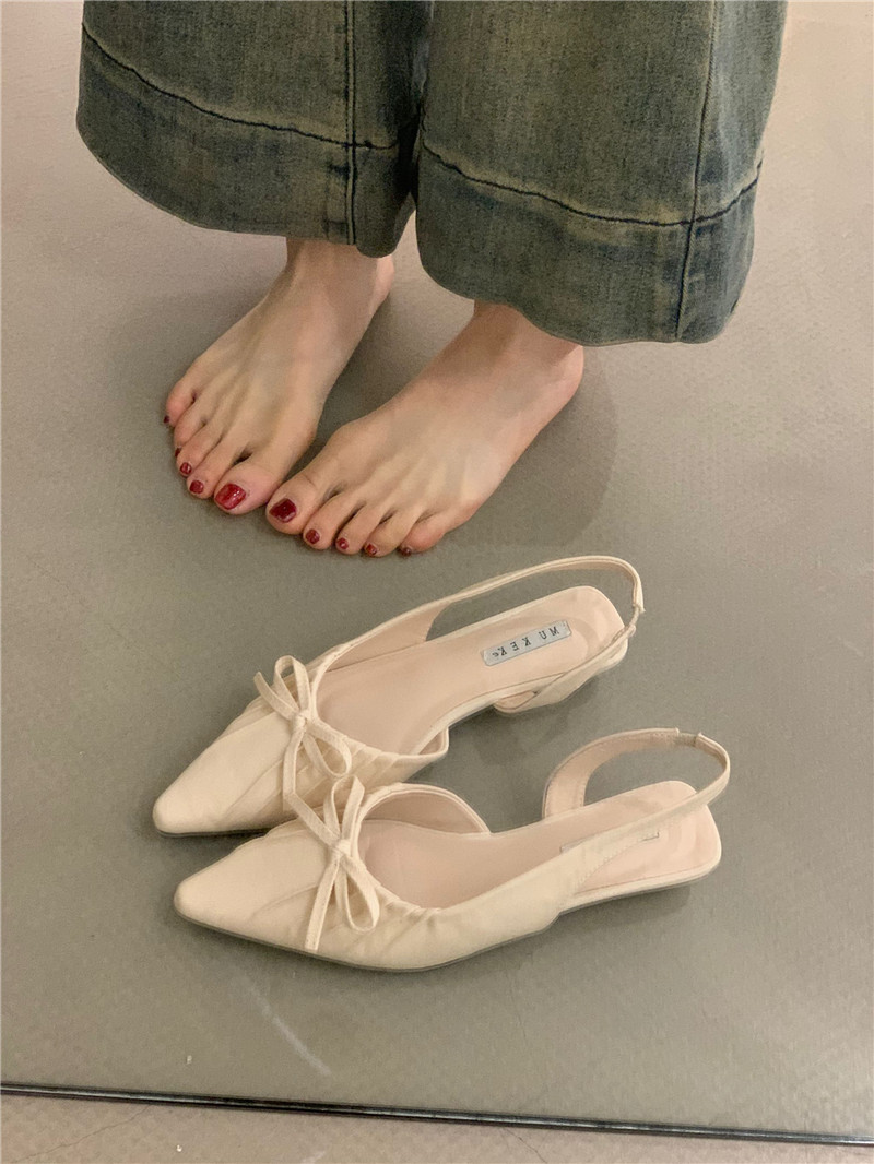 프렌치 니치 발가락 샌들 2025 봄 우아한 나비 매듭 스퀘어 토 펌프스 웨지 하이힐스토어 가기