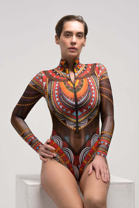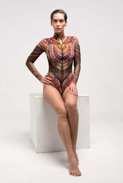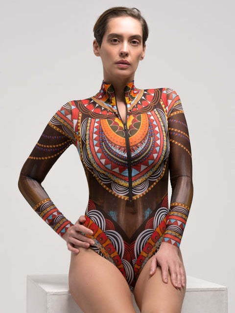 대외 무역 원피스 긴팔 자외선 차단제 고정 버전 메쉬 스타일 러시아 인터넷 연예인 인기 서핑 슈트 여성 수영복 수영복