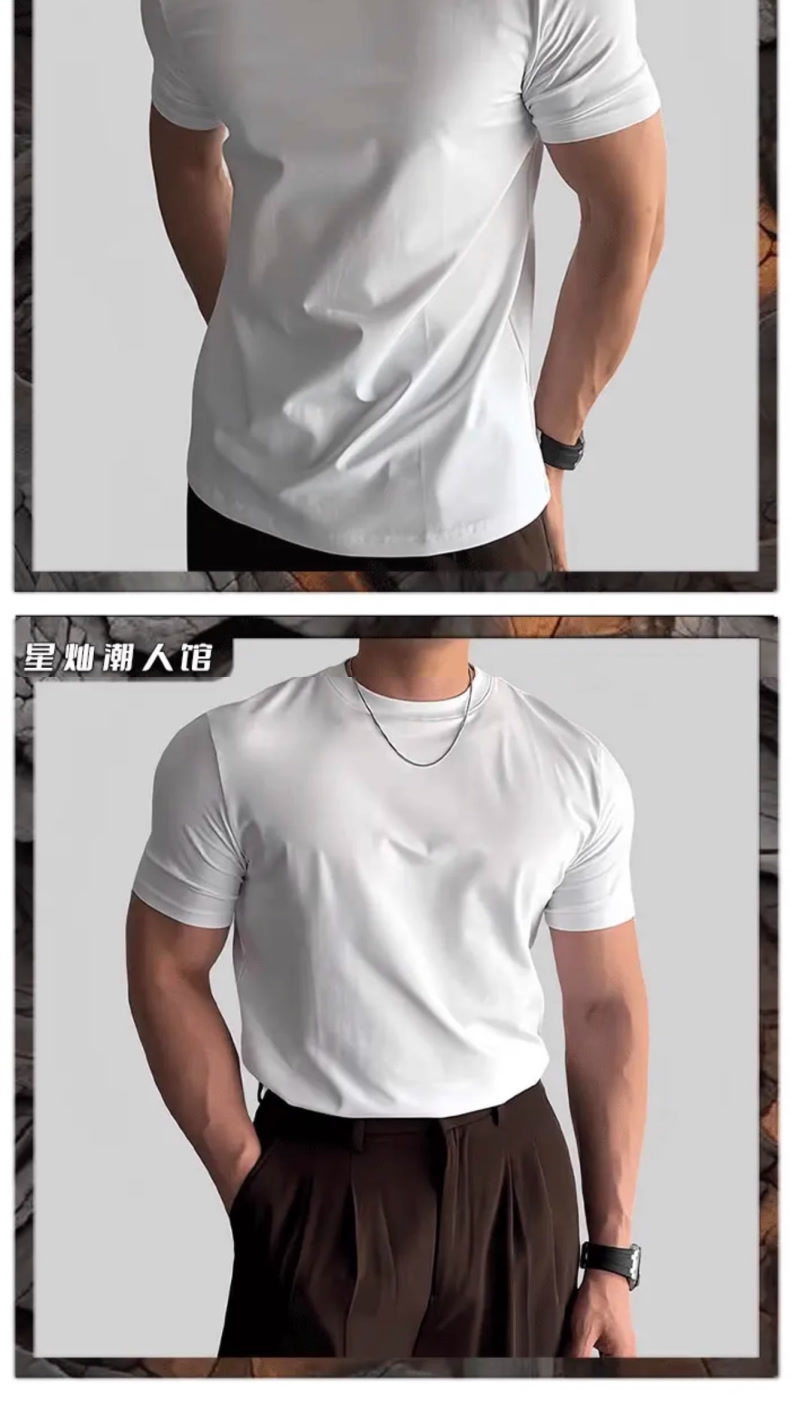 GTAL 플러스 사이즈 미국 스포츠 피트니스 의류 반팔 티셔츠 헹구는 남성 훈련 슬림핏 스트레치 근육