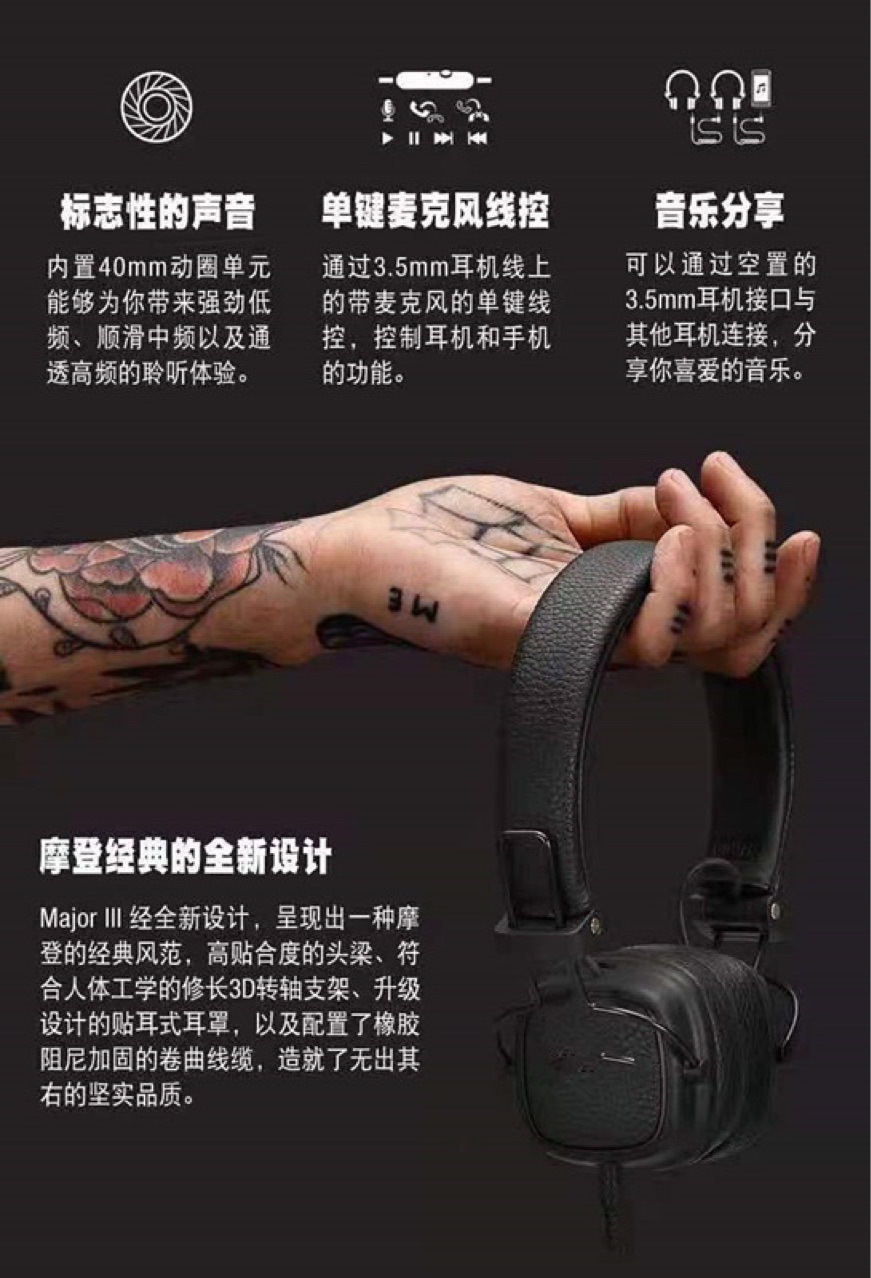 국경 간 마샬 MARSHALL MAJOR III3 세대 헤드 장착 무선 블루투스 헤드셋 서브 우퍼스토어 가기